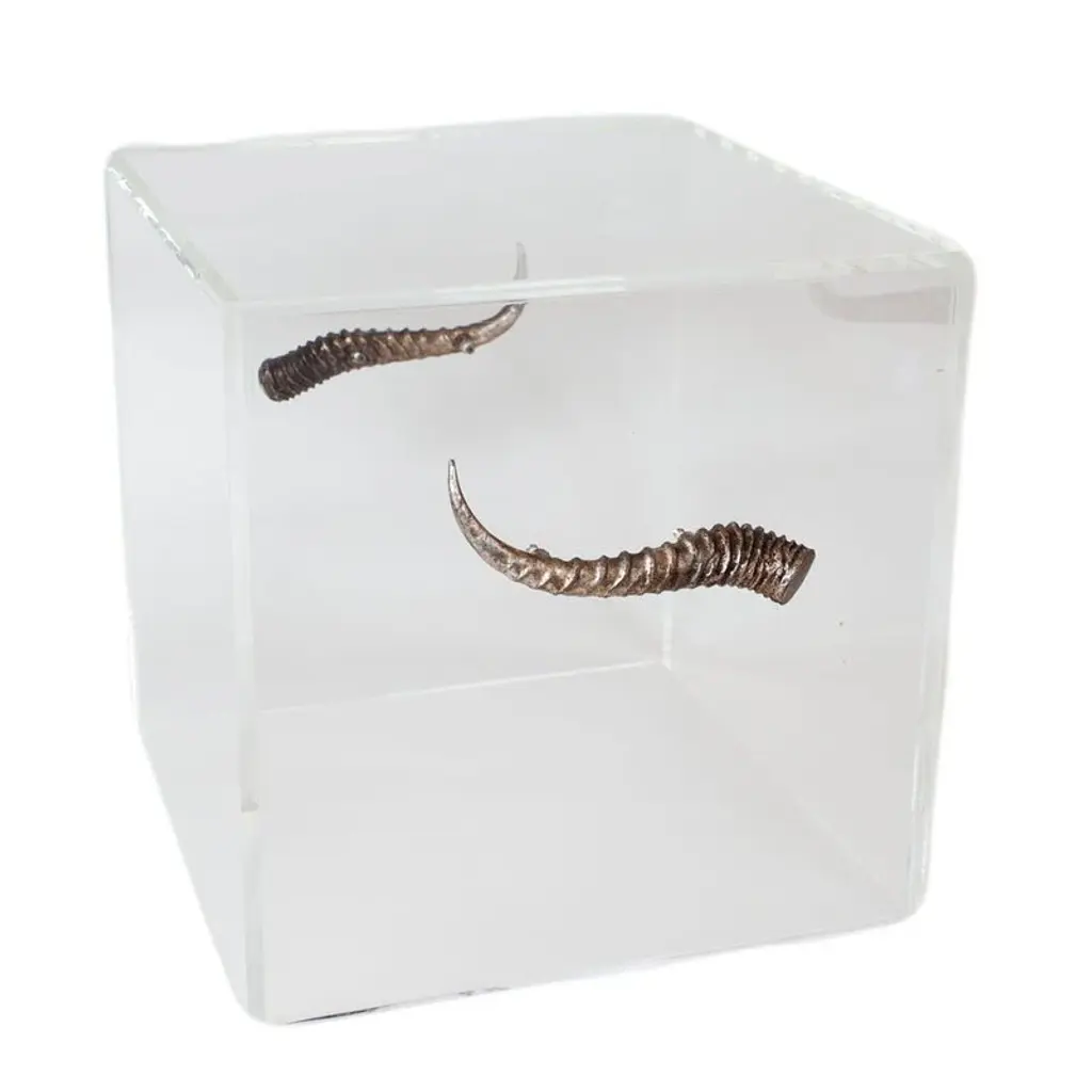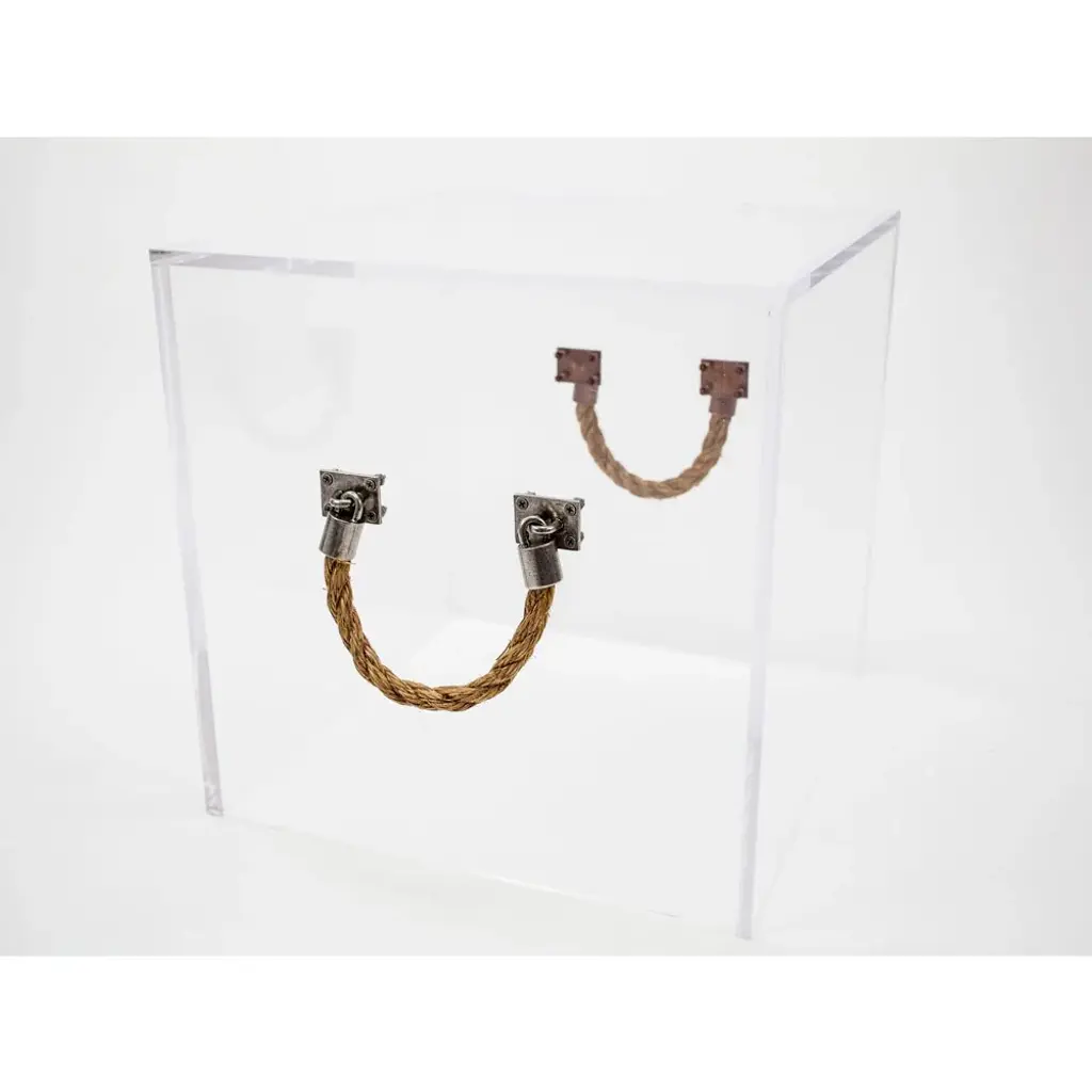 The acrylic Bella cube end table by Jamie Dietrich is handcrafted with acrylic. This versatile table features your choice of leather, rope or horn handles for easy movement. Dimensions: 18"H x 18"D x 18"W Weight: 17lbs Made in the USA Special Order - Please allow up 4-6 weeks for delivery. Free shipping in the U.S.