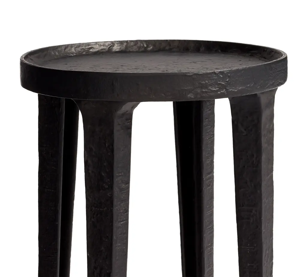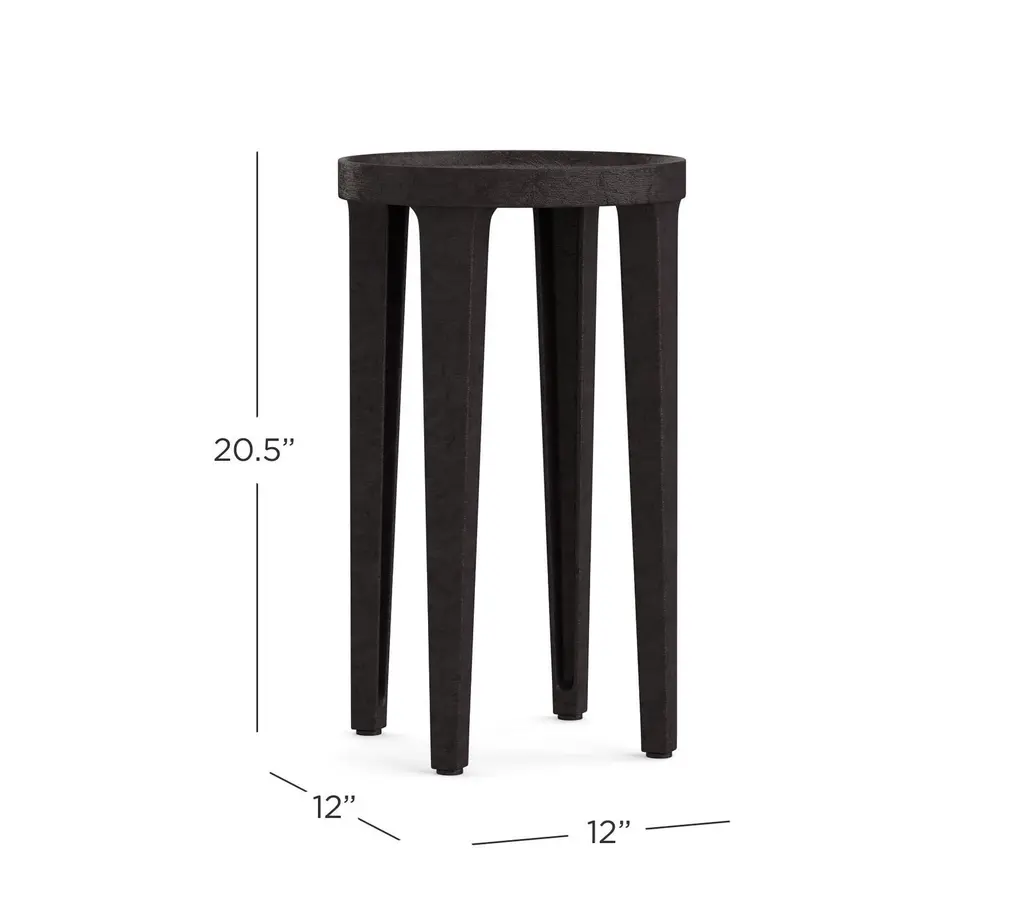 The petite Jamie Accent Table packs major style. The deeply textured surface replicates the sculptural texture of the traditional art of lost-wax casting. With its blackened bronze finish, it’s a perfect piece for elevating the look of a room.