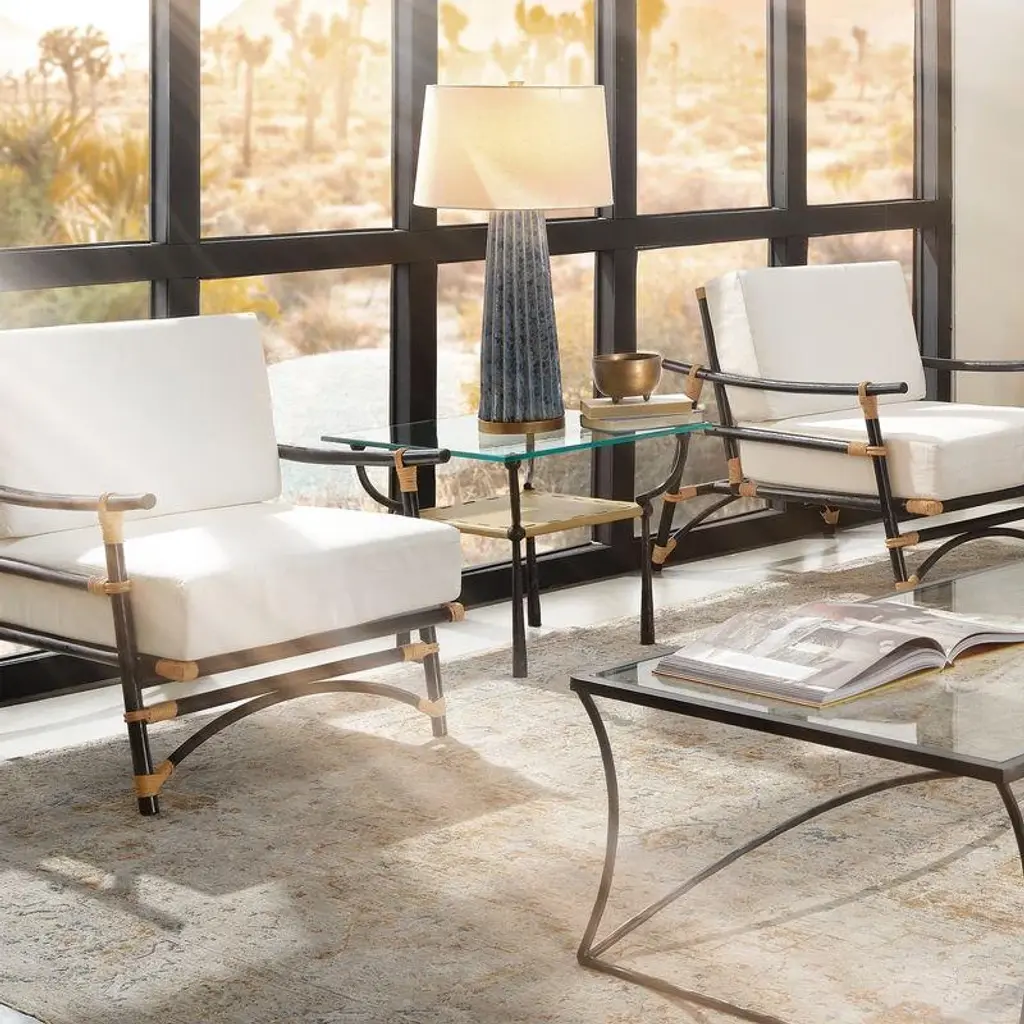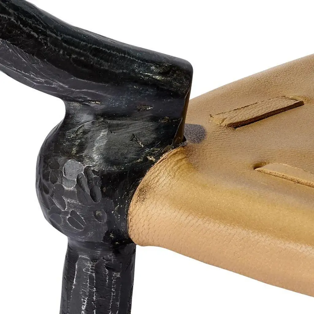 The focal point of this handsome accent table is the layer of rich, buttery camel leather. The softness of the leather contrasts superbly with the roughly hammered iron legs that anchor the piece. Finely crafted, this piece has a timeless look that never goes out of style. Hammered Wrought Iron and Leather Black Textured Frame Clear Glass Top Chunky Hand-Stitch Detailing Leather Shelf: 0.08"H x 16.5"W x 16.5"D, weight capacity 11 lbs The inherent variations in tone and texture of leather is preserved, to create pieces rich in detail and natural beauty. These unique imperfections give our products character and individuality, with each piece having its own personality. These unique imperfections and variations are what define our products, with each piece having its own personality. Top Dimension: 0.5"H x 25"W x 25"D Floor Clearance: 12" Leg Dimensions: 12"H x 1.25"W x 1.25"D Distance between legs (front to back): 17" Distance between legs (side to side): 17" Legs Are Not Removable Shelf Weight Capacity: 11 lbs Weight Capacity: 20 lbs Care Instructions: Do not use harsh or abrasive cleaners at any time. Wipe surfaces gently with soft, dry cloth or chamois. Blot to remove spills. Do not allow liquids to remain in contact with the surface for extended periods. Do not place near heating outlets or direct sunlight as this may cause damage to finish.