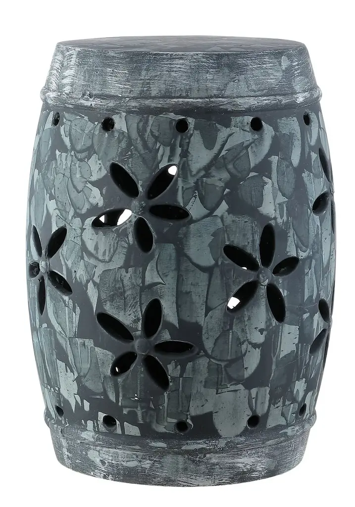 The Wildflower Side Table is a patterned ceramic side table that adds texture and color to your space. Finished with a reactive glaze, the variation in its coloring adds depth and decoration to an otherwise simple standalone piece. Table is organic, handmade and hand fired. Size, shape, color and glaze will vary. Burns and heat striations will occur. Outdoor Safe. To be used as a side table only, not suitable for seating.