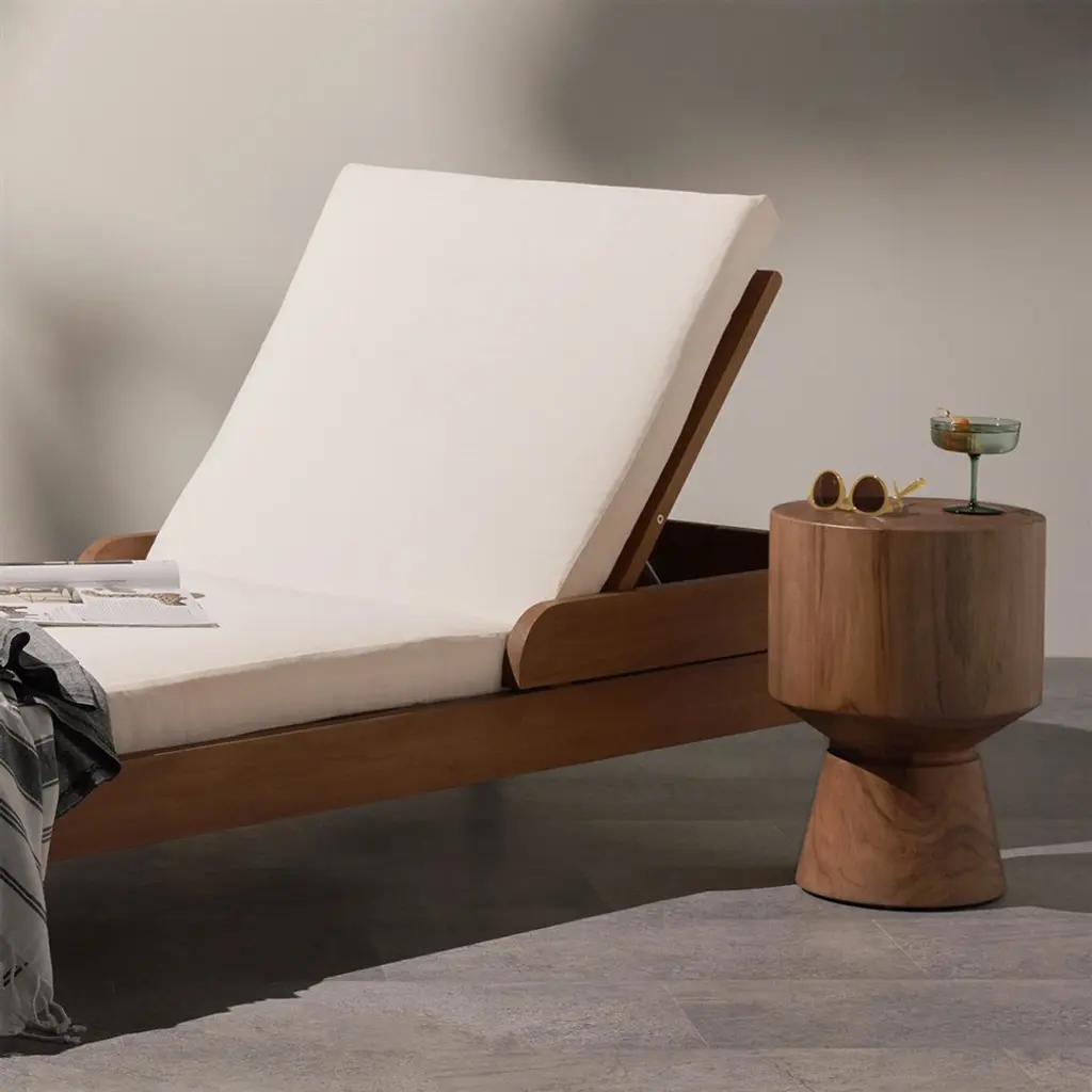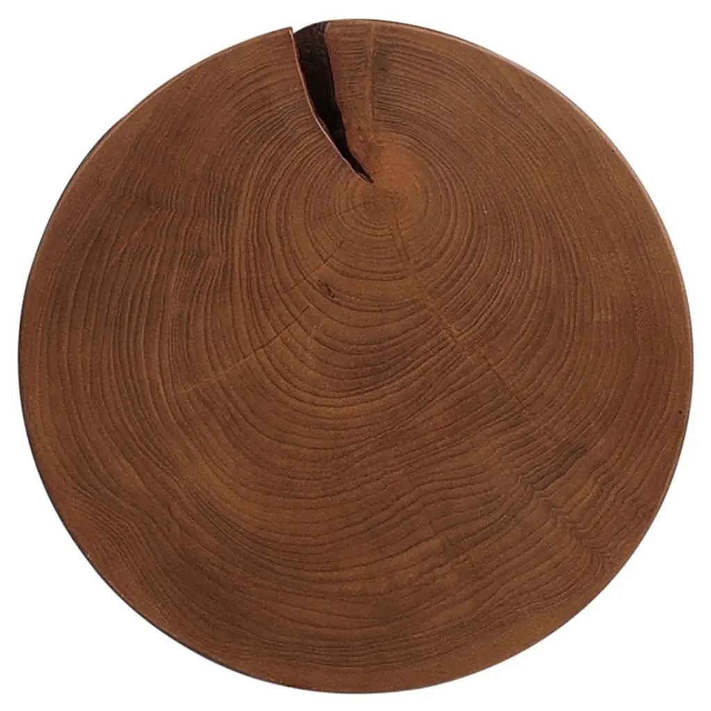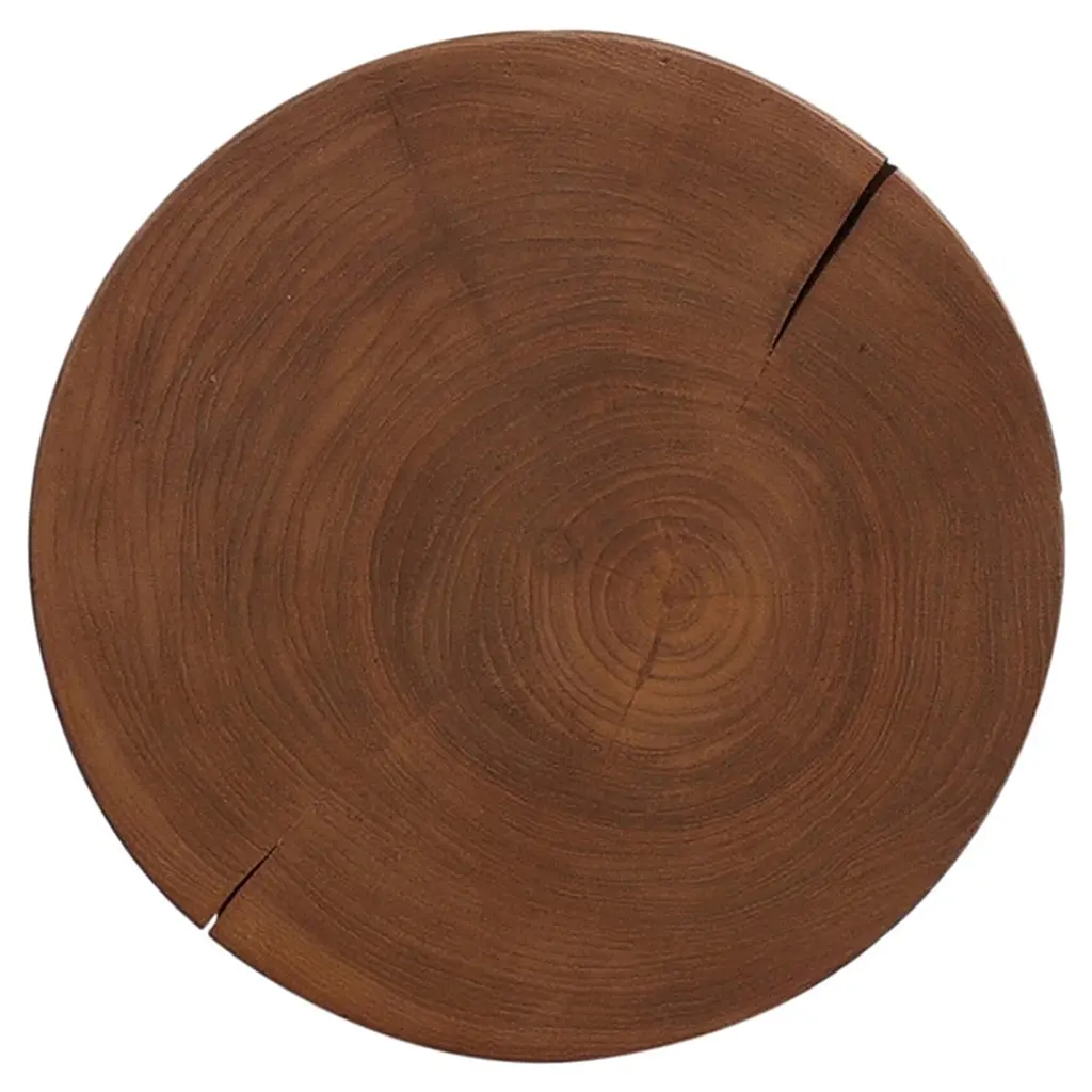 Janey Global Bazaar Natural Teak Wood Drum Outdoor Side End Table