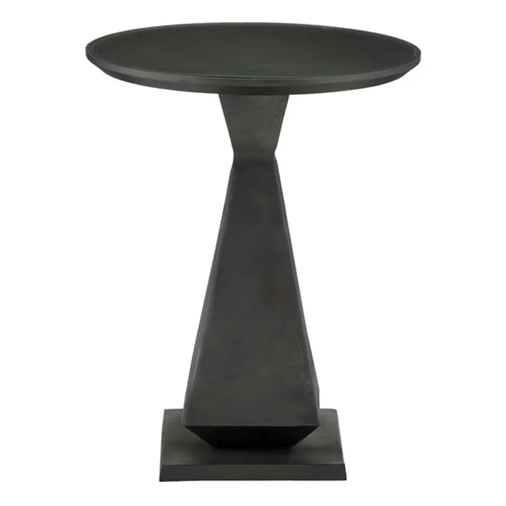 The Janil Side Table from Currey & Company is equally at home in minimalist lofts or eclectic living rooms. Crafted from cast aluminum, its robust form projects strength while maintaining a sense of sculptural elegance. The table's geometric outline transforms it from a mere functional piece into a remarkable decorative element. A glass inset top adds a layer of refinement and practicality, ensuring the surface is both beautiful and usable. This table is a focal point that anchors a room's aesthetic.