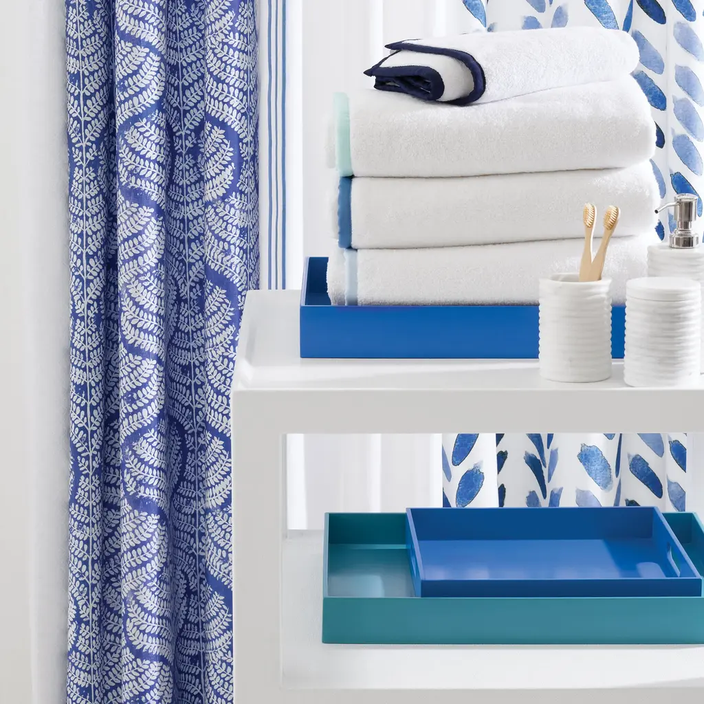 A side of style; the perfect minimalist silhouette and diminutive proportion of this open shelf side table plays the best friend to any decor and suits any room from bed to bath to living. Hardwood frame, encased in resin based, faux Belgian linen finish, offers sophisticated navy weft texture and a pleasing sheen. Each leg is endcapped with a modern bronze shoe.