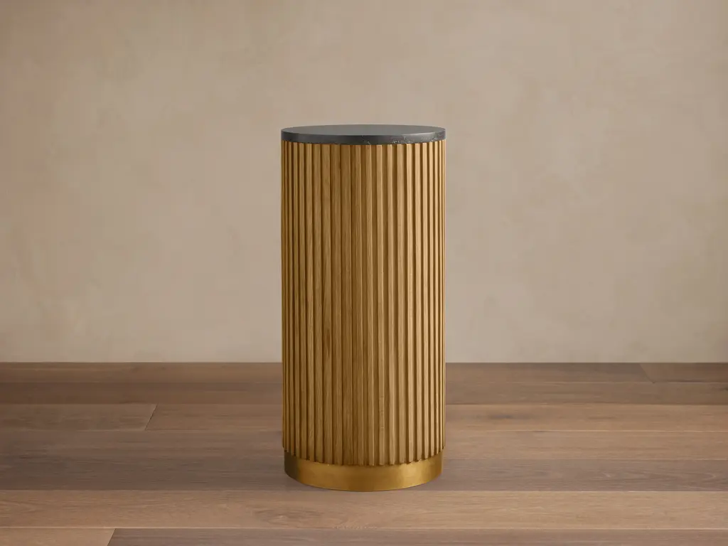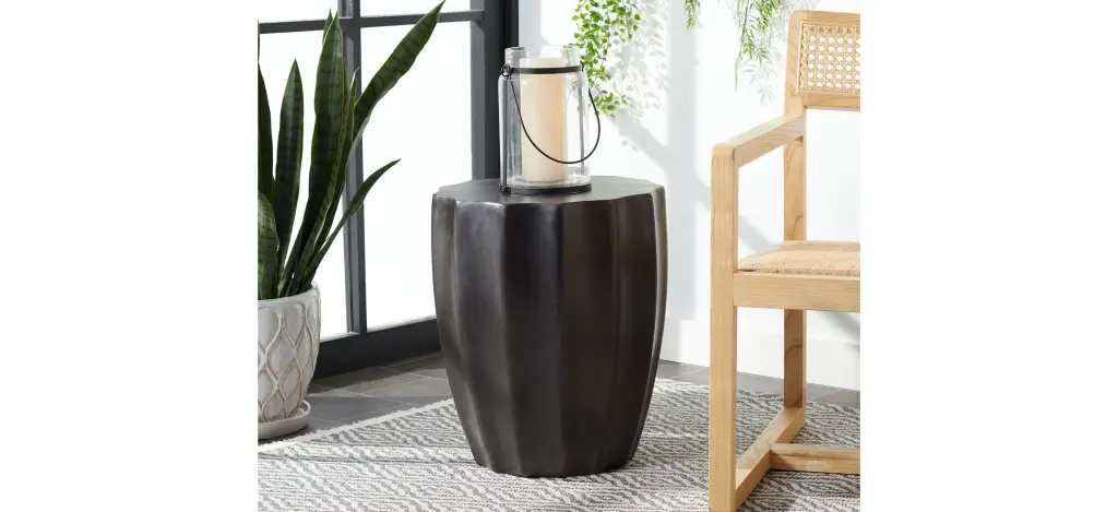 An exhibition of antiquity's architectural marvels inspired this contemporary concrete accent table. Its nuanced design and black hue highlight the symmetric ideal defining beauty in the ancient and modern world. Perfect for indoor and outdoor use.