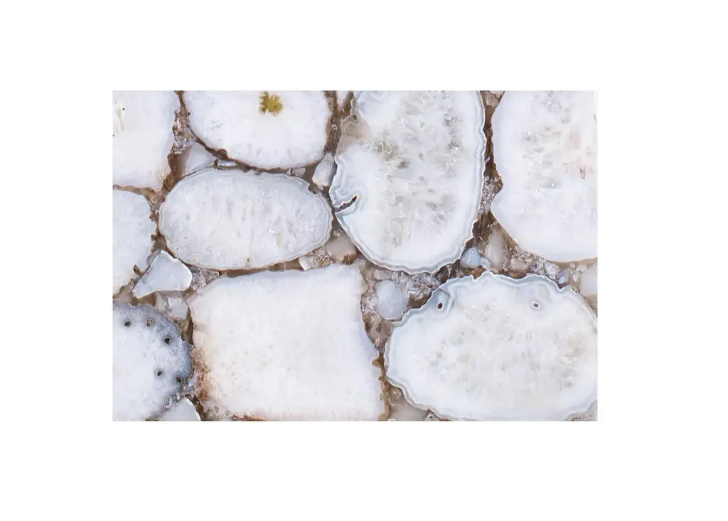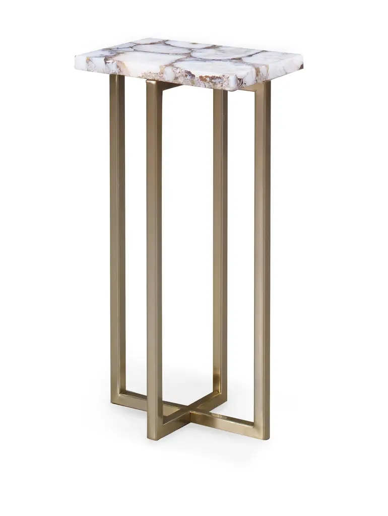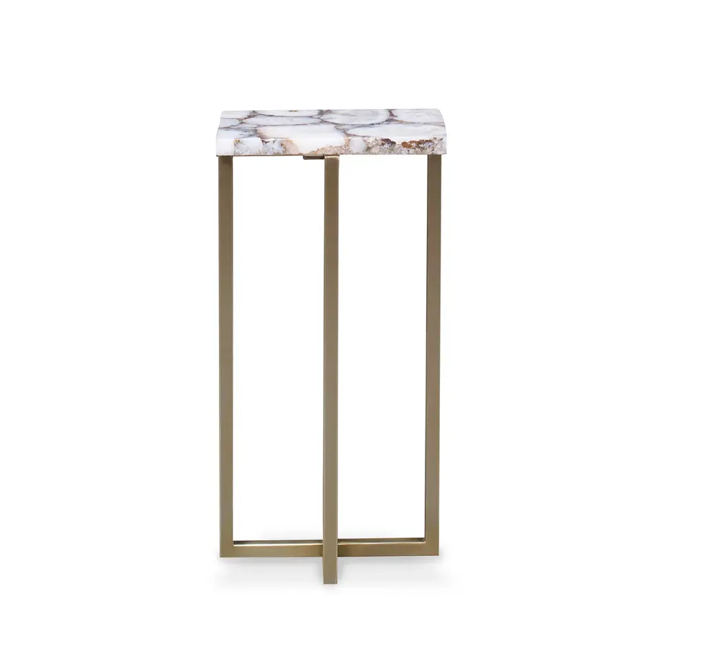 Agate stone top with brushed brass metal base Assembly Required? No Care Instructions: Dust with a soft, clean cloth slightly moistened with water, and dry completely with another clean cloth, always rubbing with the grain.
