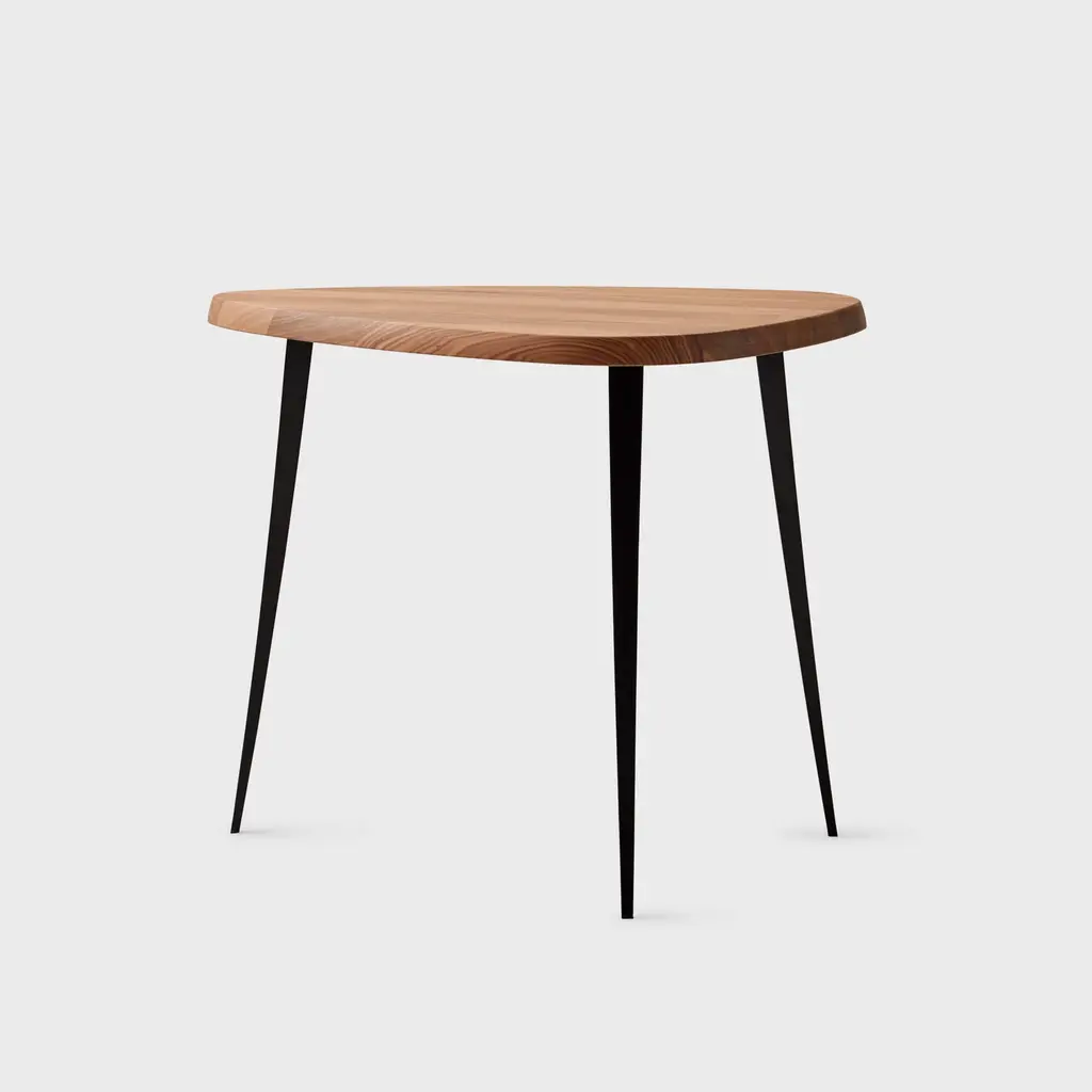 The Java Side Table features thin hammered black steel legs for a beautiful, refined shape. Placed atop the hand forged legs of this shaped side table is a thin slice of European white oak veneer that features unique virtues of the tree it came from, displaying the rings of the tree while the open areas are filled with a black silicone to finish the surface and add character. Complete the look by stacking different sizes to create your own unique configuration of Java Tables for an eye-catching centerpiece in your living room, study, or bedroom.This side table is made from a natural material therefore each tabletop is unique and features one-of-a-kind details within the wood rings.