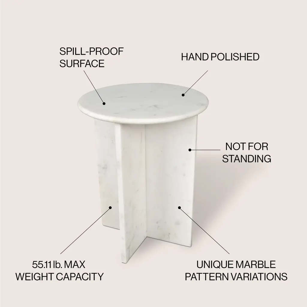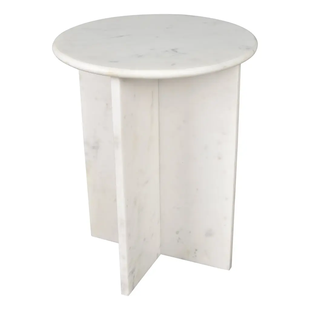 With its sleek contemporary look, our marble accent table is a stylish minimalist design. The round tabletop and x-shaped base are made entirely from natural stone. Set one beside a bedroom chair, or use a pair in front of a mid-century modern living room sofa.