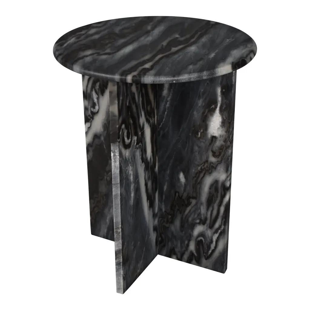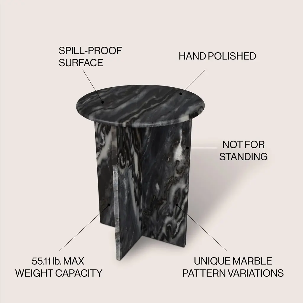 Javier Contemporary Natural Marble Handmade X-Shaped End Table - Black