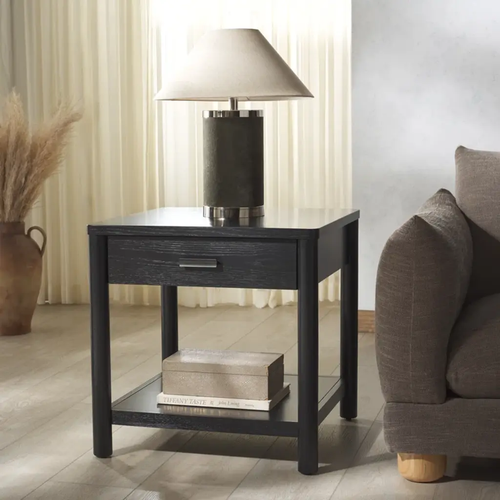 Discover the timeless elegance of the Jaylessa Wood 1 Drawer End Table Accent Table. Crafted from solid rubber wood, oak veneer, and manufactured wood, this piece boasts a natural finish which adds a warm and inviting touch to any living space. The addition of a zinc metal detail demonstrates sophisticated style, enhancing the organic beauty of the wood. Offering functionality along with aesthetic appeal, the table comes with a conveniently integrated drawer, providing additional storage space and tidy organization. The Jaylessa Wood 1 Drawer End Table Accent Table seamlessly complements any decor style, elevating your spaces with a charm that is truly unparalleled. This will be the prized showpiece of your furniture collection.