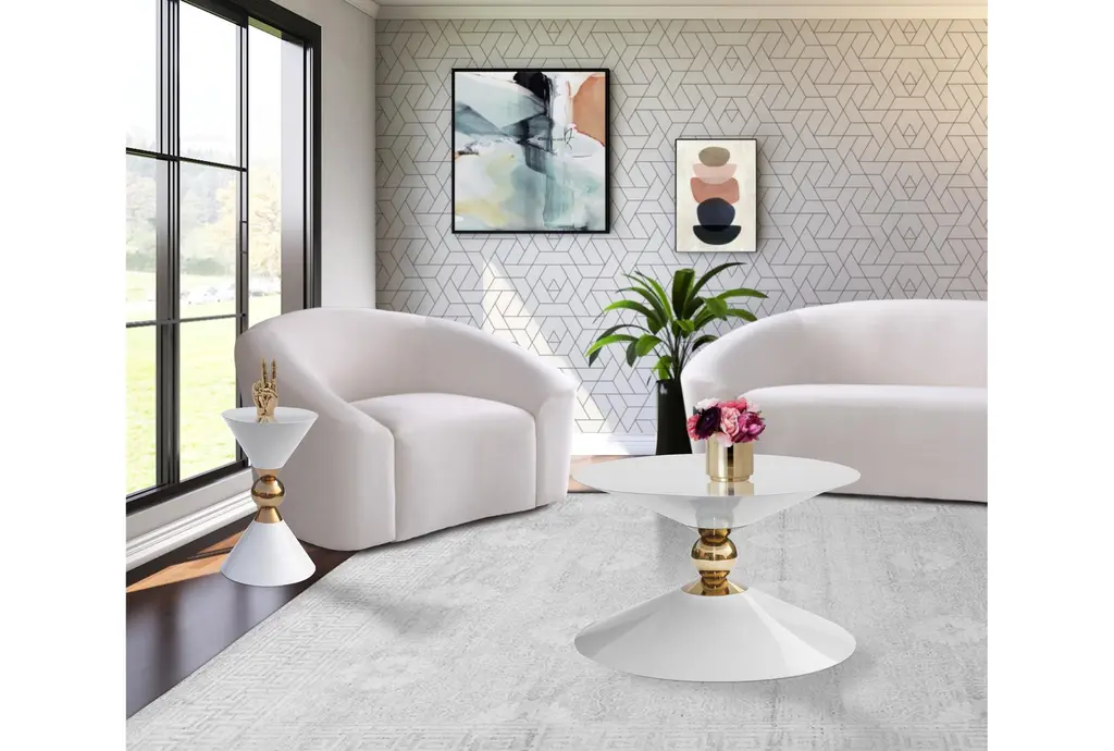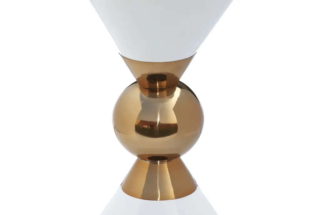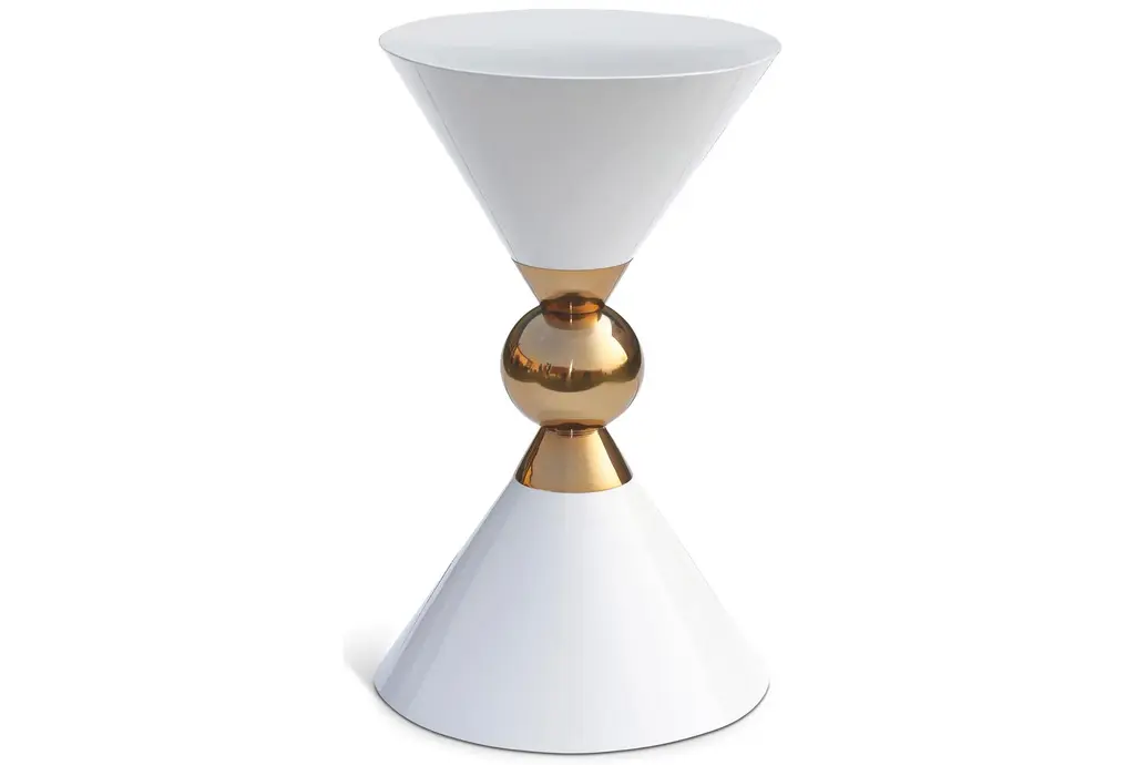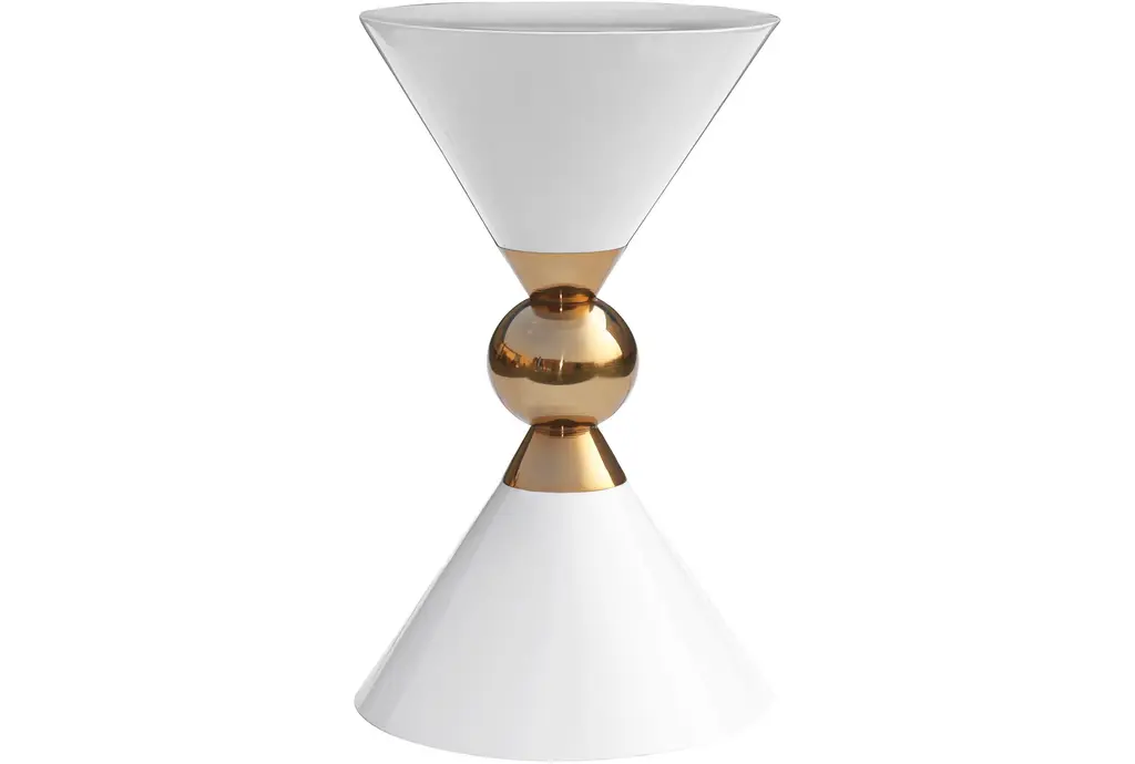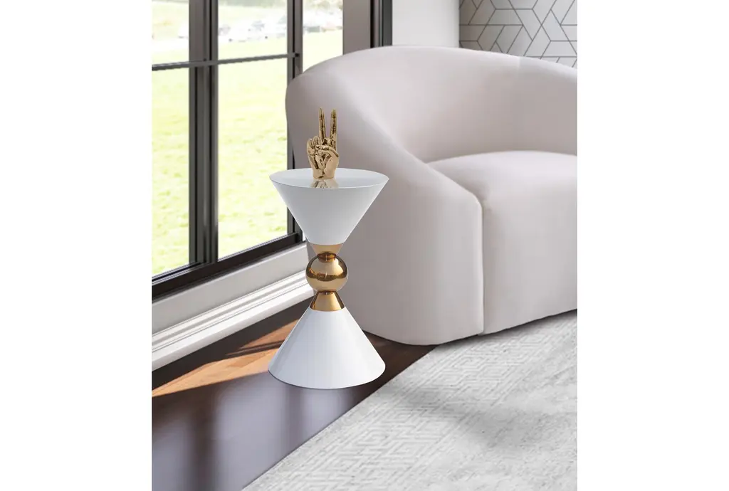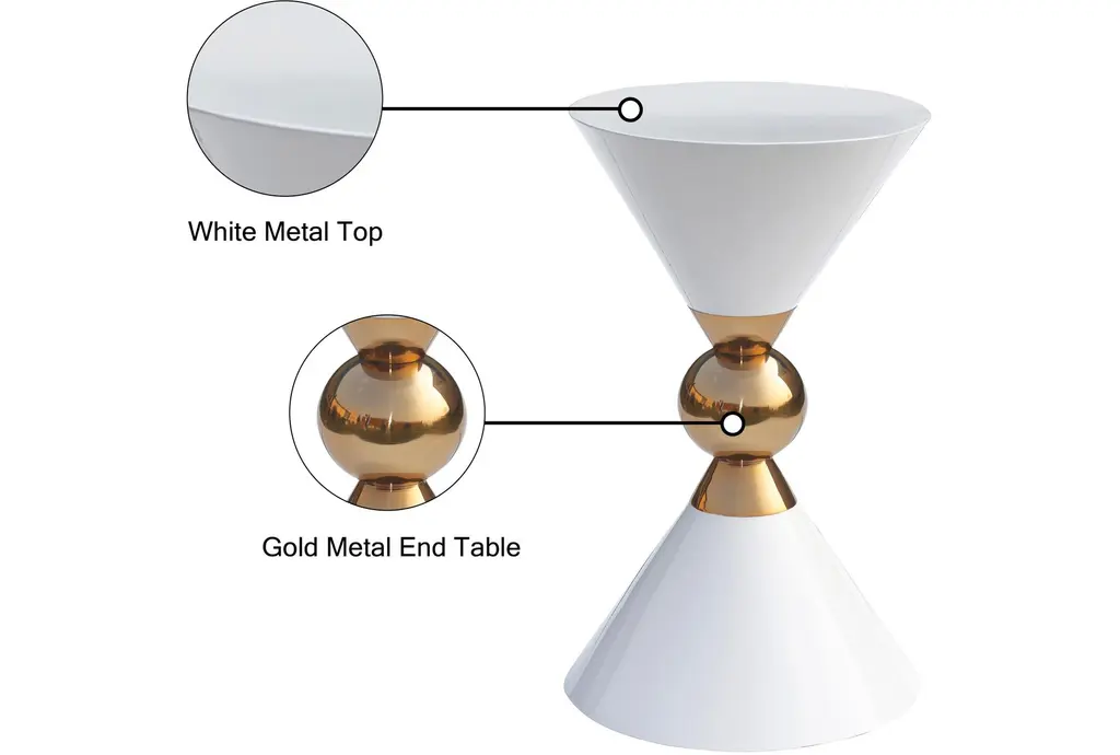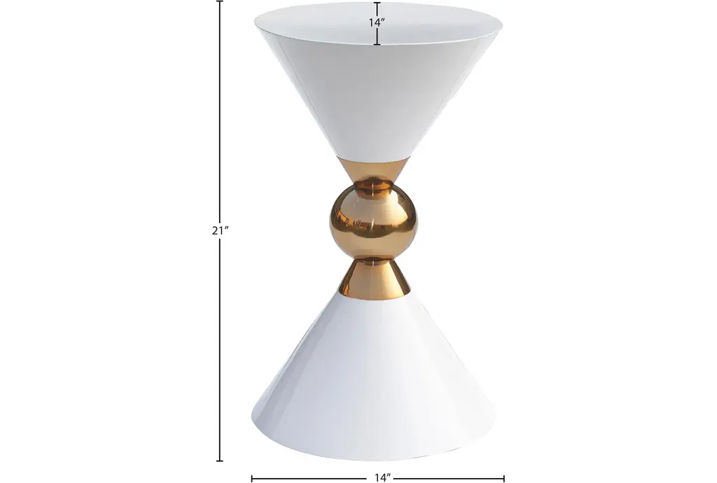 The Jean Modern White + Gold 14" Hourglass End Table is a stunning addition to any modern or contemporary living space. Its unique hourglass shape and elegant white and gold color scheme make it a standout piece. Crafted from durable iron, this end table combines style and functionality effortlessly. This design also serves as the perfect bedside table.