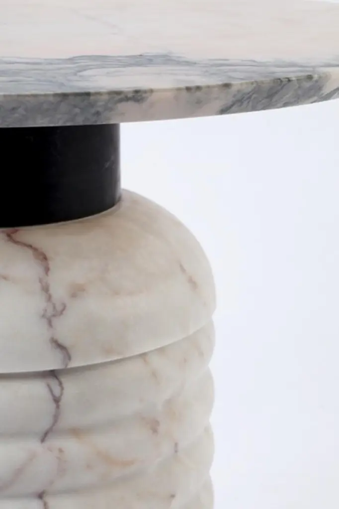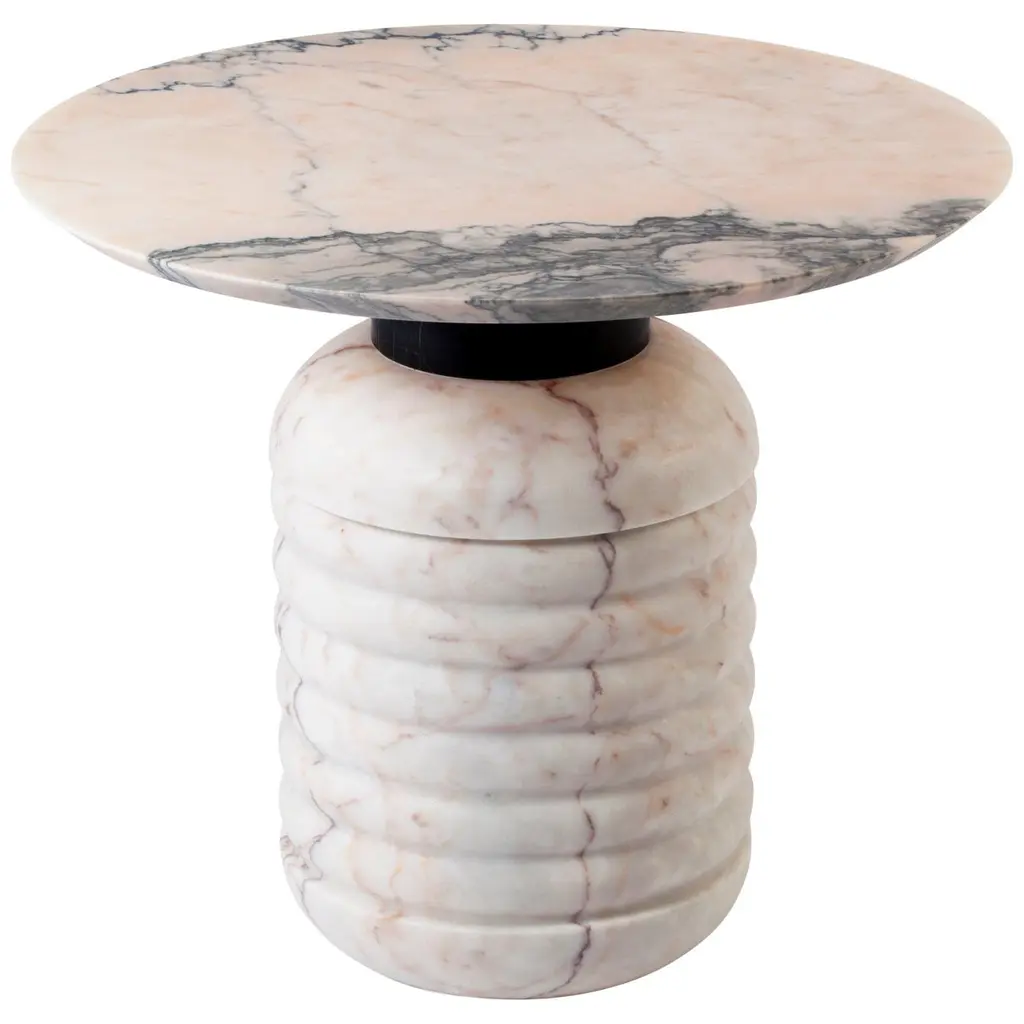 Jean side tables are unique in their conception. The combination of three different marbles make them a sign of unconformity and originality. The combination in the picture is in Estremoz white marble, Estremoz pink marble and Nero Marquina marble. Made to Order. For sales with delivery address within European territories, VAT will be charged additionally to the stated price.