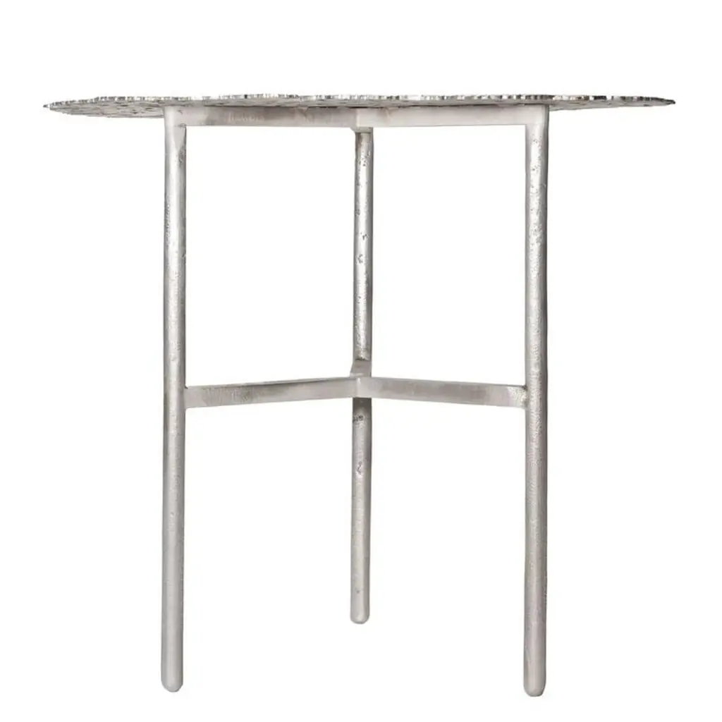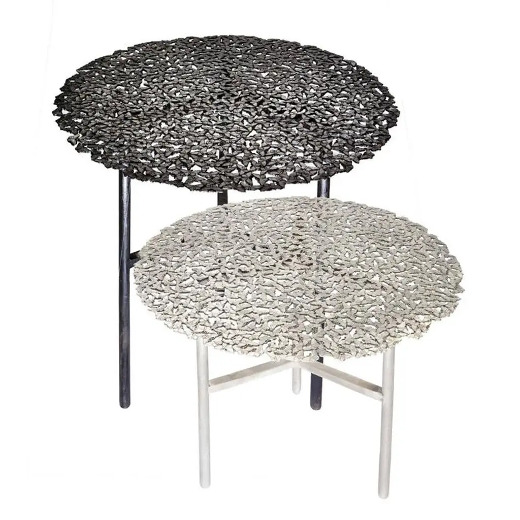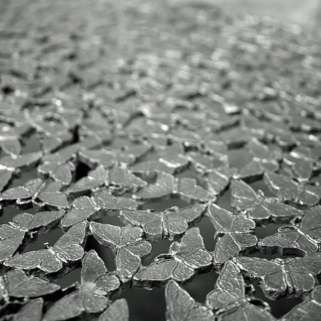A swarm of butterflies as delicate as a lace table cloth forms an everlasting tabletop in white bronze, lost wax cast by Italian master craftsmen. A sculptural table for both indoor and outdoor use.This listing is for the white bronze version, for the blackened bronze version or the coffee table version, please see the dedicated listing. Standard height 54 cm / 21 1/4 inch. If you'd like a different height, just let us know, there's no extra charge. About Fred&Juul:Fred&Juul was founded by Italian-Dutch architects’ duo Federico Minarelli and Julie Janssen. They design statement pieces that are developed with and then produced by local artisans, who are highly specialized in a specific material. Guided by their architectural sensibility and love for nature, the material's possibilities and properties are explored until a shape or detail emerges, which is developed until the piece is completely defined. The result is that the shape highlights the material and viceversa, while the detail captures their essence: the mottled, grainy surface of the brass star-shaped Raffaele light; the juxtaposed Oak grains in the marquetry of the chubby Sally table; the intricate cast brass butterflies of the Johnnie sconce; the Travertine’s edges of the Lily credenza that seem to curl; the enchanting effect of the colored translucent Itzel tables overlapping; …