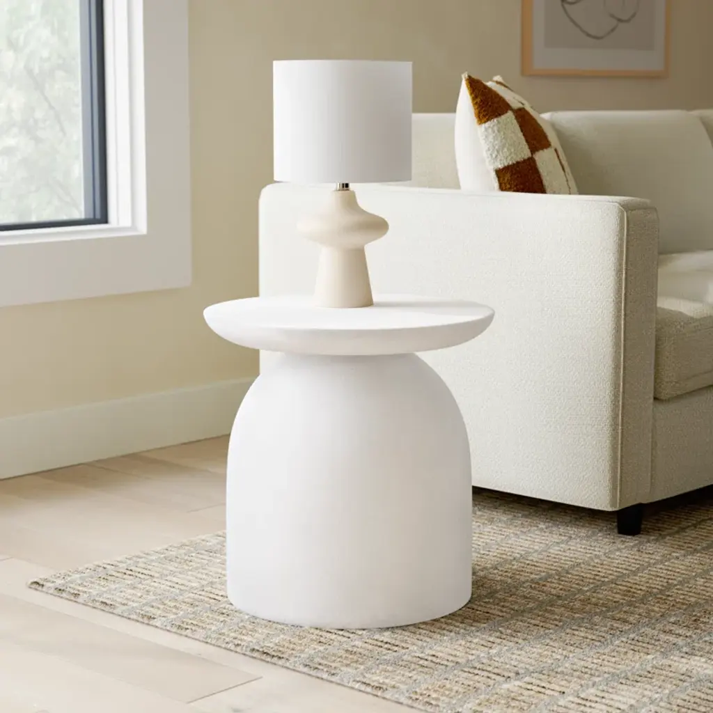Bring sculptural appeal to your living room or family den with this mid-century-inspired end table. It features a textured white concrete top that adds a touch of contemporary appeal to your space, while its pedestal base provides sturdy support. Measuring 20'' tall and across, this piece complements a low-profile sofa or armchair. The round table top accommodates everything from accent pieces and a lamp to framed photos and drinks. We also love that this table's eye-catching silhouette is sure to spark conversation among your guests.