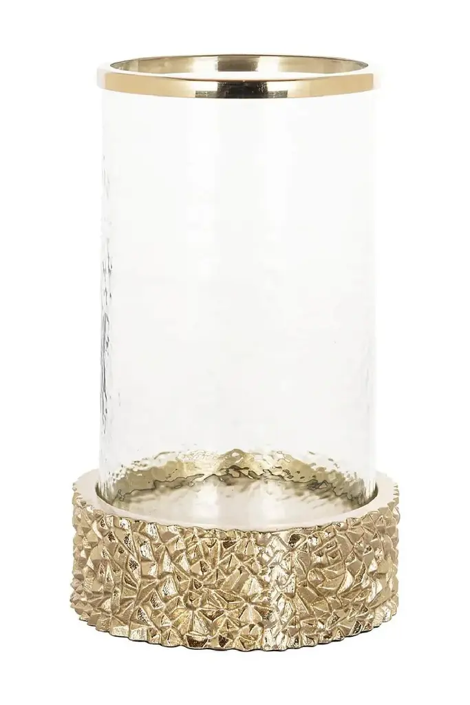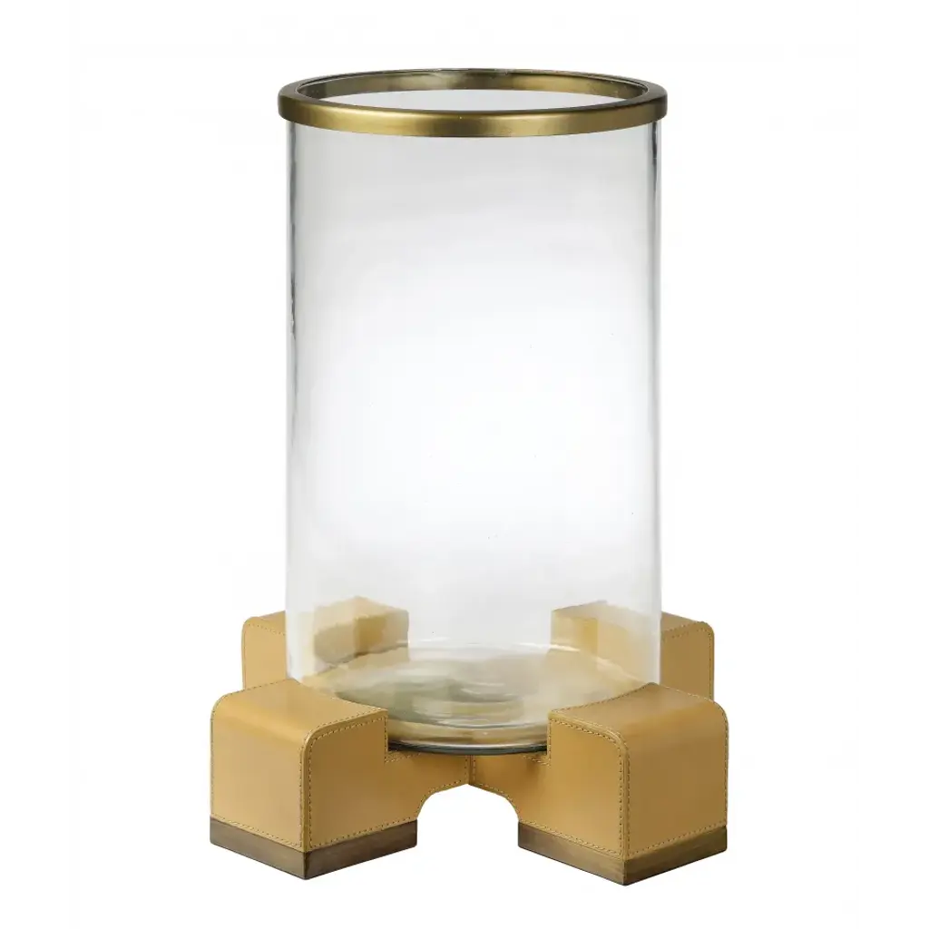 The Jesse Accent Table from Arteriors adds a distinct accent to the room as a blend of rich materials. This modern piece uses geometry to highlight its hardware. It features a cylindrical glass base that proves elegant at the center of a living room or next to a lounge chair. The airy reflections of the glass seduce against the deep shine of the brass metal cuff. This cuff makes an artful statement with a cascading outline.