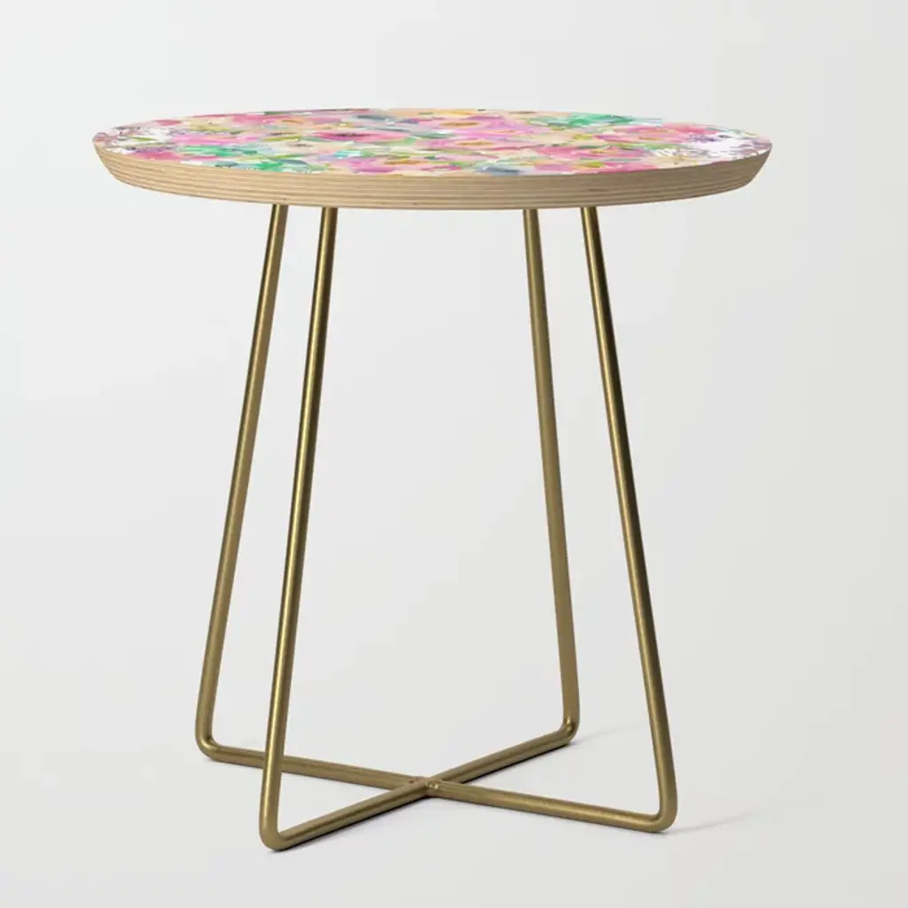 From sideshow to show-stopper, our side tables will be a stunning modern accent to your space. Selecting from our wide array of artist's designs printed with a satin finish on birch wood, you’ll take any room from zero to a hundred. Available in a square or round table top, and black or gold leg colors.Square: 19" x 19" x 19" (H)Round: 19" (diameter) x 19" (H)Baltic birch table top with beveled edgeHigh quality print with satin finishSteel legs available in black or goldAssembly requiredFor more info click here.SHIPPING: Items are made to order and typically ship within 3-4 business days. Click here for more information about delivery options.Furniture sales are final. Click here for more information on returns.