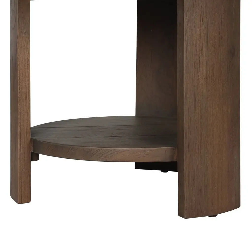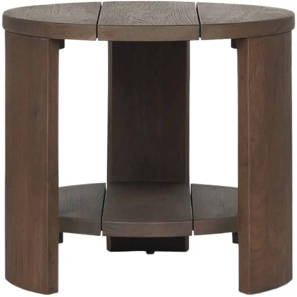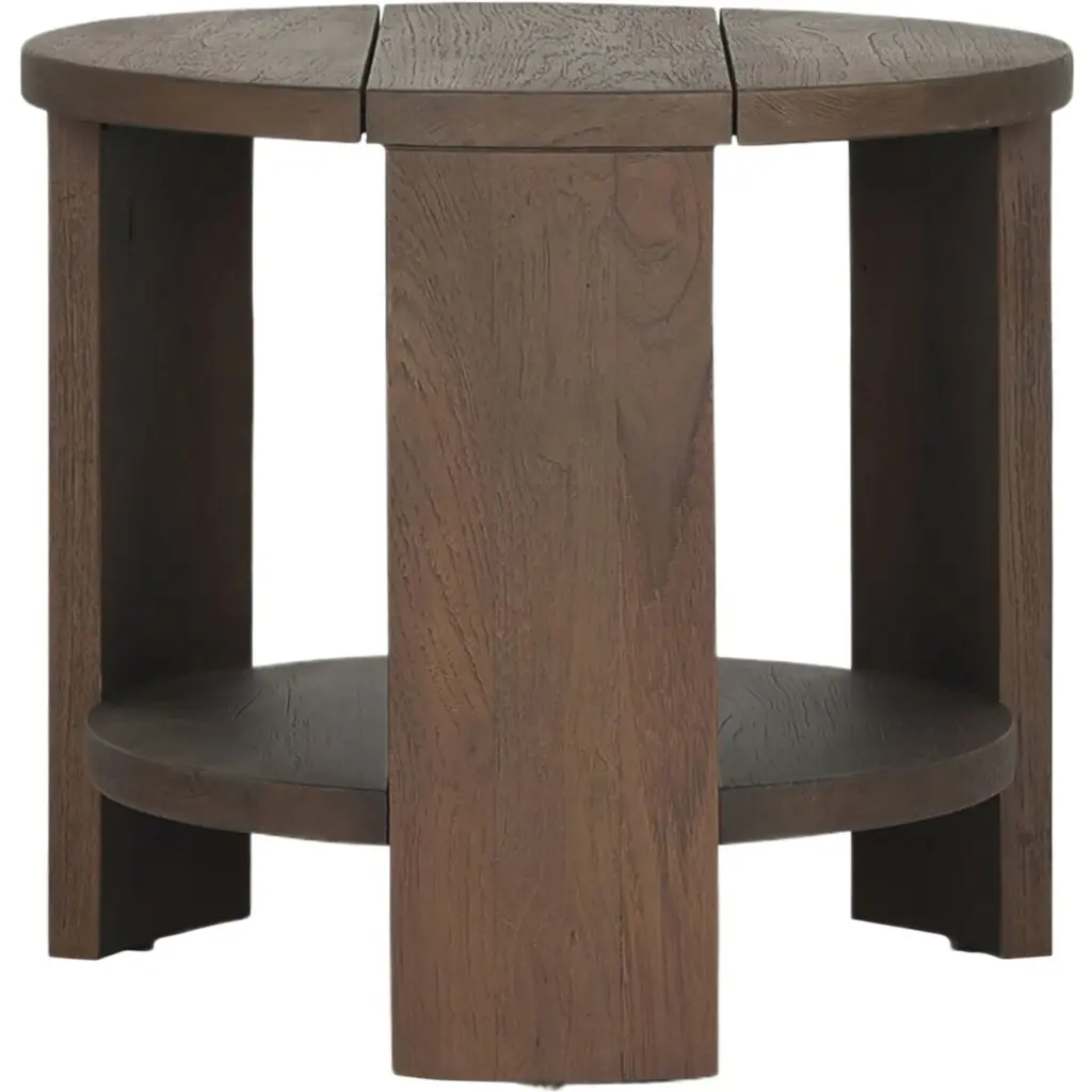 Joan Outdoor Teak Round End Table, Stained Heritage Brown
