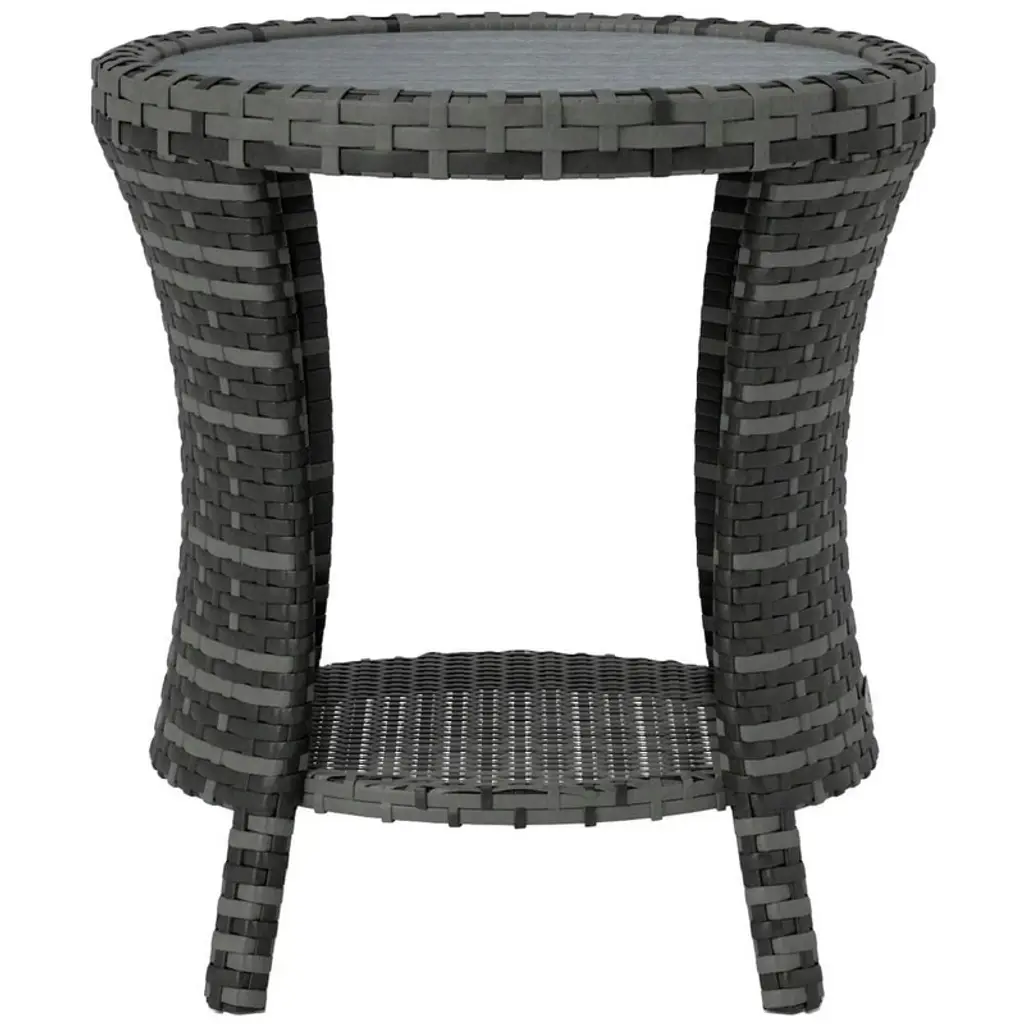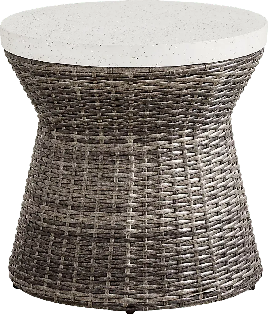 The hourglass-shaped Joanna End Table, designed to pair with multiple outdoor looks, brings to mind classic coastal style. It's distinguished by an intricate woven design in weather- and UV-resistant N-dura™ resin wicker.