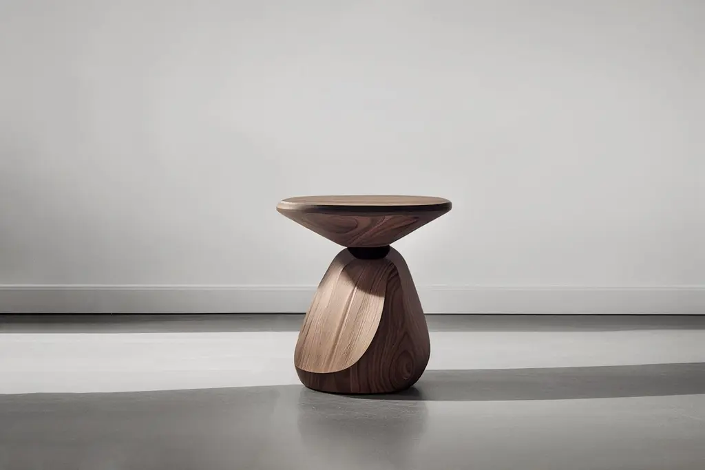 Sculptural side table made of solid walnut wood, nightstand, auxiliary table solace S4 by Joel EscalonaThe Solace side table series, designed by Joel Escalona, is a furniture collection that exudes balance and presence, thanks to its sensuous, dense, and irregular shapes. These small tables double as works of art, bold and sculptural, with function taking a backseat to expression.Inspired by the iconic Pigeon sculpture by Isamu Noguchi, the Solace side table series is a stunning tribute to the fusion of traditional and modern design elements that made Noguchi's work so unique. Drawing on the curves and lines that characterize his style, these side tables feature outlines that pay homage to the renowned American artist.Crafted from stunning walnut wood, the Solace side table series celebrates the rich, earthy hues and unique grain of this beautiful material. Each piece is produced one at a time in our workshop in Mexico by NONO Furniture, making it truly one-of-a-kind. Due to the nature of the production process, every piece may vary in grain, texture, and shape, adding to its unique character.These versatile side tables can also function as nightstands and are crafted with care and attention to detail by our skilled artisans. The individual variations in grain, texture, and shape ensure that each piece is a functional sculpture. Production takes 7-9 weeks to ensure the highest level of precision and quality.—Nono is a Mexican design brand with more than 10 years of experience dedicated to the production of interior furnishings, editions, and custom-made projects. At Nono, we create pieces of extraordinary beauty, accommodating the particular needs and tastes of each client with exclusive high-quality designs.————Some details to consider when placing an order with us:• Catalog images are digitally generated. Actual products may slightly vary in texture, grain, and final finish due to natural material differences. Despite these variations, our expertise ensures each piece maintains high quality and matches the intended design.• All of our products are made to order, and the lead time for standard products is estimated to be 9 to 12 weeks, plus shipping time. However, special pieces or sculptures may require a longer lead time.• We offer customization in dimensions and finish for all of our furniture pieces, which may result in additional charges.• We only facilitate freight services by a third party. The client is solely responsible for any associated import/export taxes, as well as any necessary customs paperwork.• We are not responsible for any damages that may occur during shipping or for any customs-related delays.