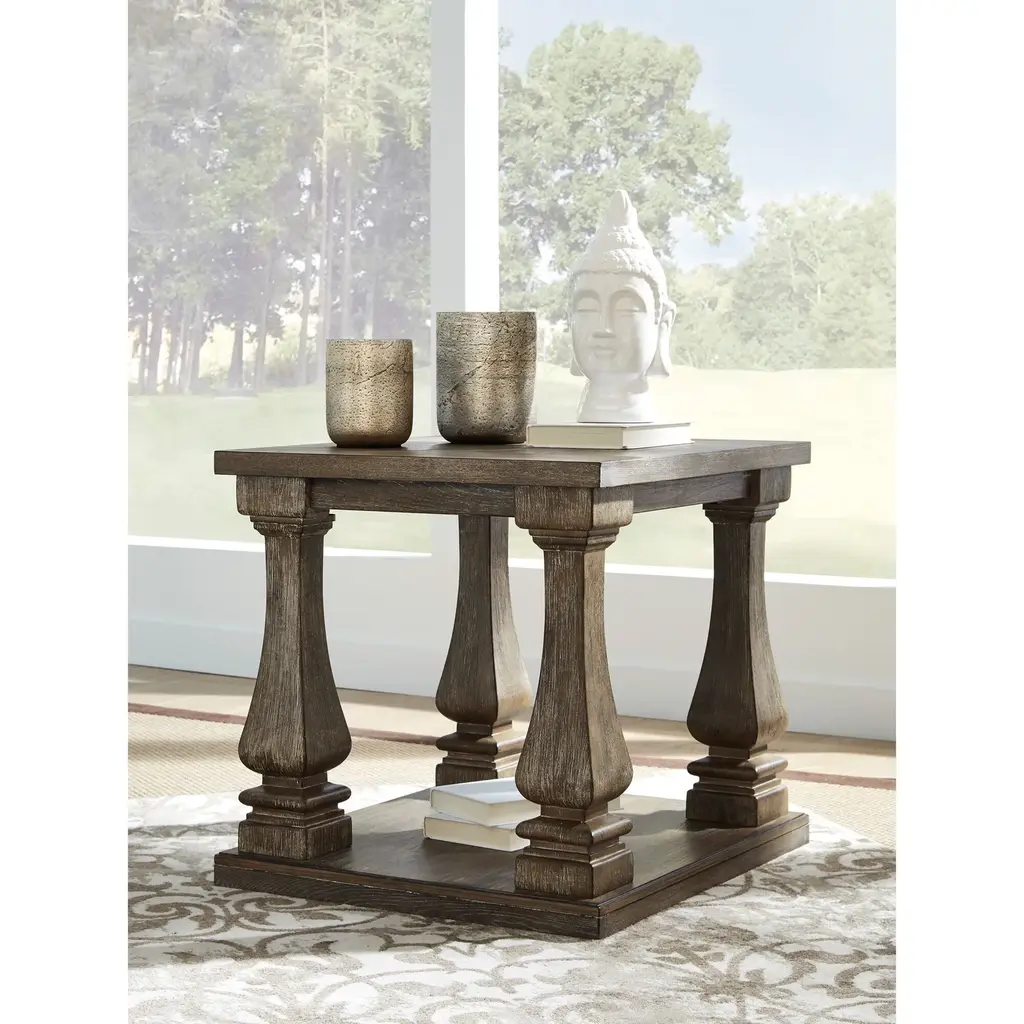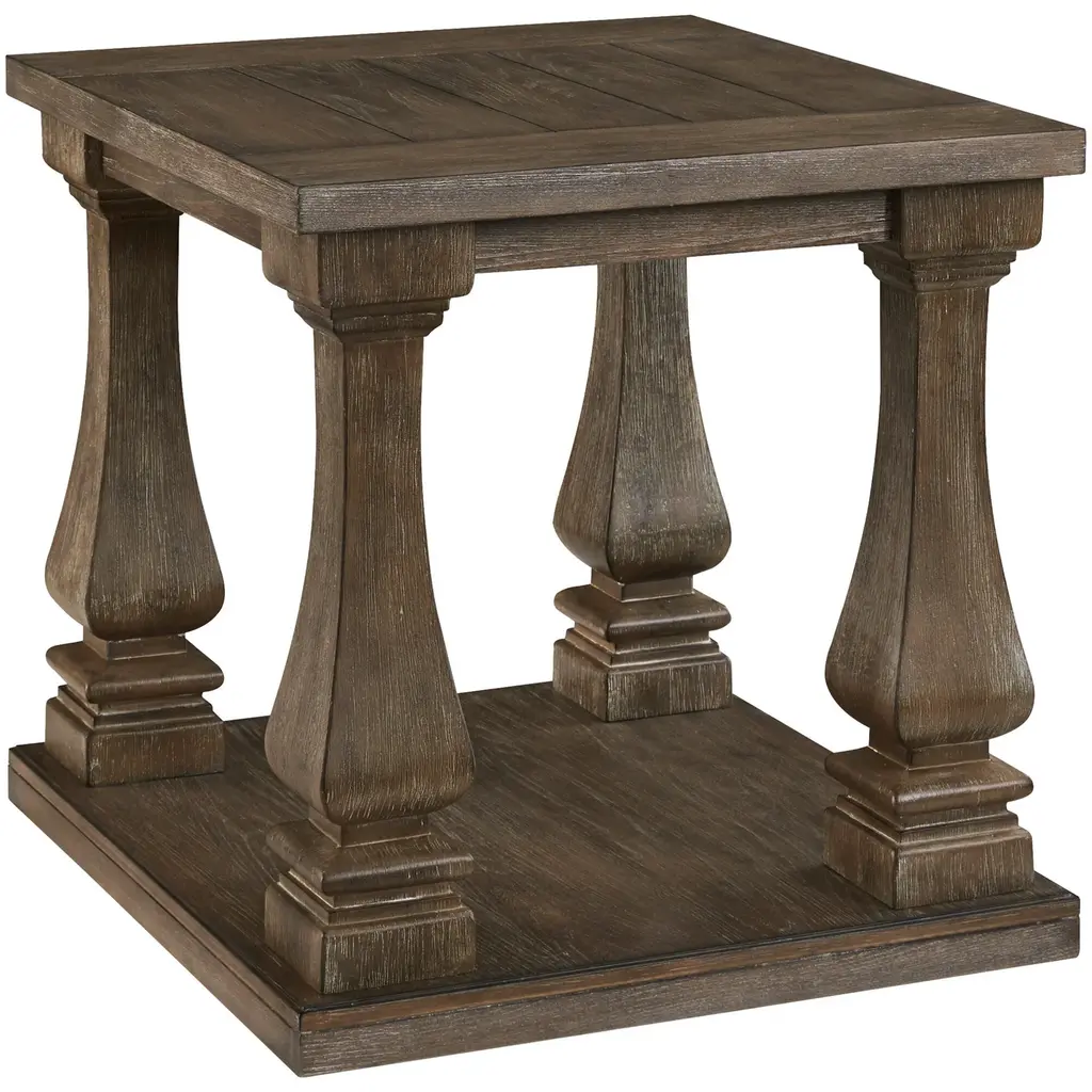 Johnelle End Table by Ashley Furniture Industries, Inc. is a truly distinctive piece. This all-wood table is distinguished by elm veneers, square baluster legs, and traditional styling. It is the perfect match for the Johnelle Coffee Table but also works as a standalone accent piece. The solid construction and heavy weight are hallmarks of the Ashley Furniture Company, which is why we proudly display so many of their products at Slumberland Furniture. Stop by your local Slumberland to see the Johnelle End Table and other Ashley Furniture products, or order yours online today. Free delivery is available in certain zip codes.