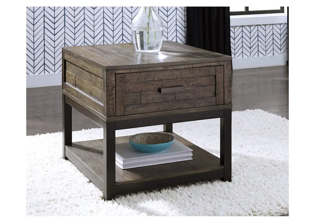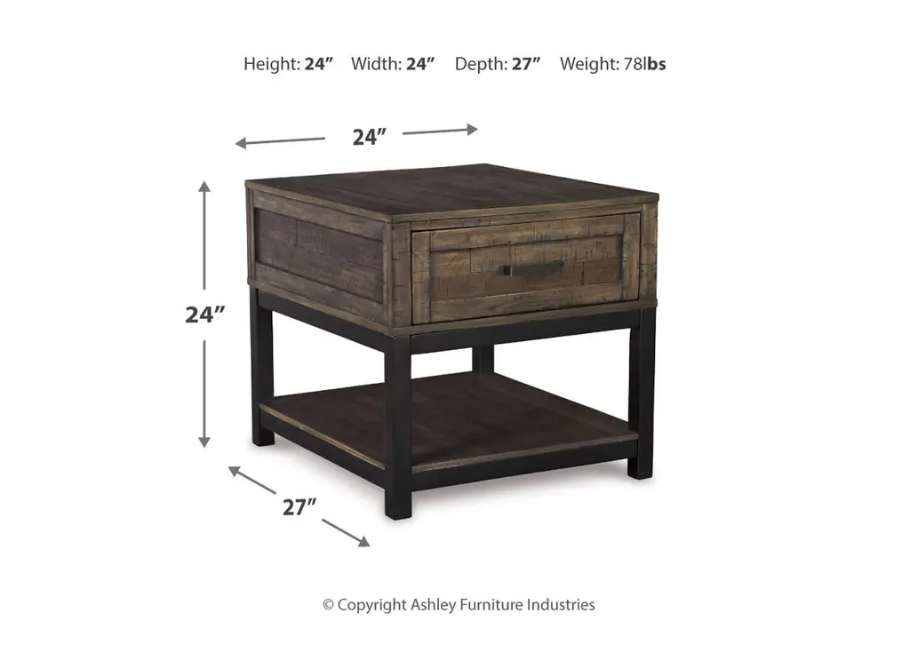 Combining a two-tone finish with a gently distressed texture produces one very distinctive end table. Whether your style is modern farmhouse or urban industrial, the Johurst end table is the perfect accent for your rustic retreat. Weight 68.000 lbs. (30.6kgs.)