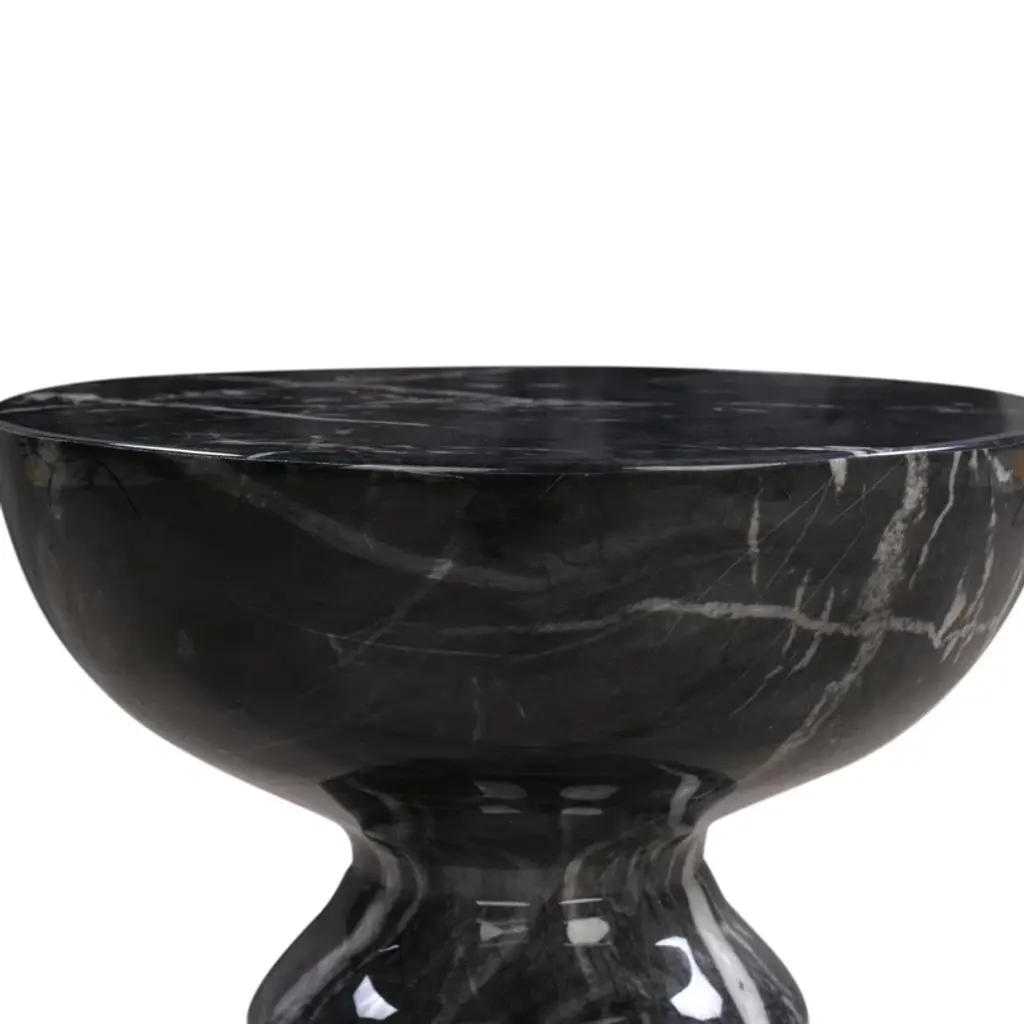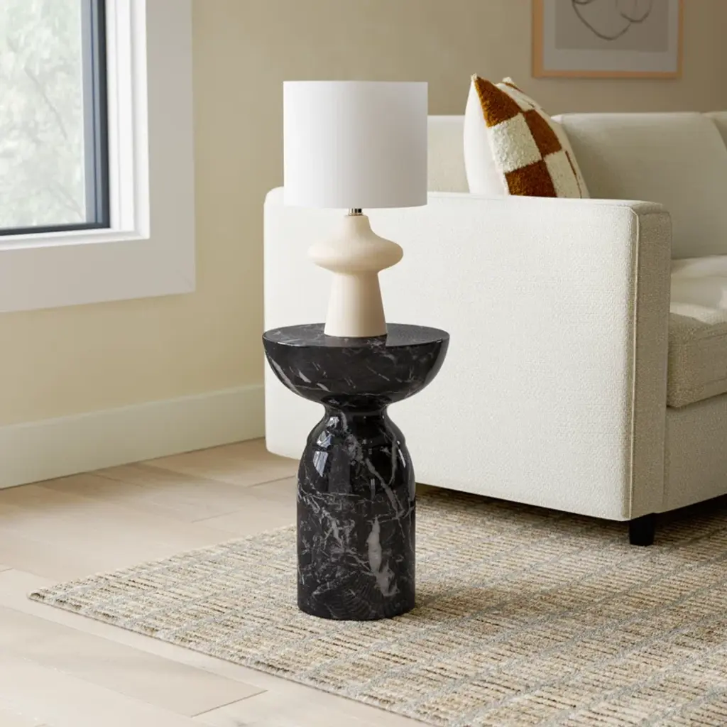 Solid construction and a stunning marbled design give this pedestal end table its sleek look and distinctive style. Handmade by master furniture artisans, it's crafted from concrete and comes in the marbled two-tone hue of your choice. Intricate graining throughout the table draws the eye, while the tapered base provides a solid foundation. Up top, the pedestal-style table is perfect for an accent lamp, a series of framed photos, or your favorite plant. Best of all, this table arrives fully assembled.