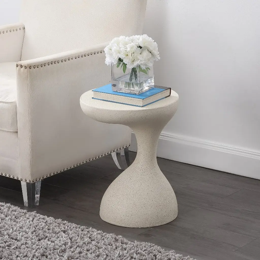 Jonathan Y Boracay 19.75" Modern Minimalist Indoor/outdoor Resin Drink Table, Cream Terrazzo
