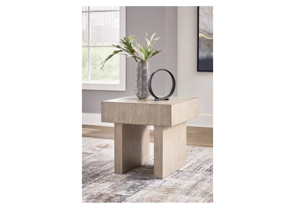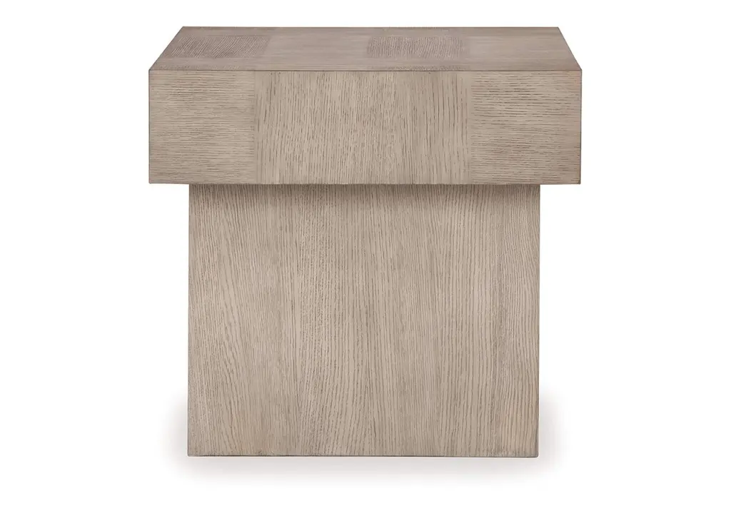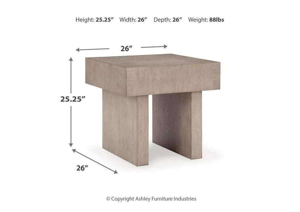 The striking Jorlaina end table looks equally at home in traditional or modern settings. A textural light gray finish offers a casual modern look, while the double plinth base exudes a classically contemporary sensibility. With its timeless design, this table is just the spot to display photos or decor accents. Weight 85.000 lbs. (38.25kgs.)