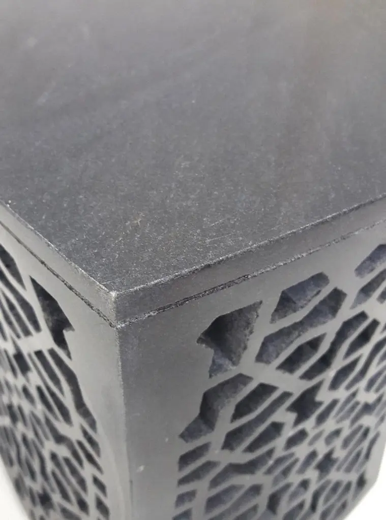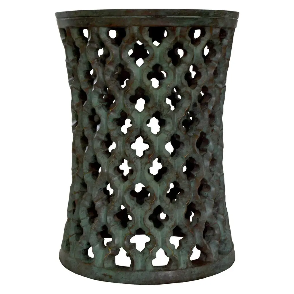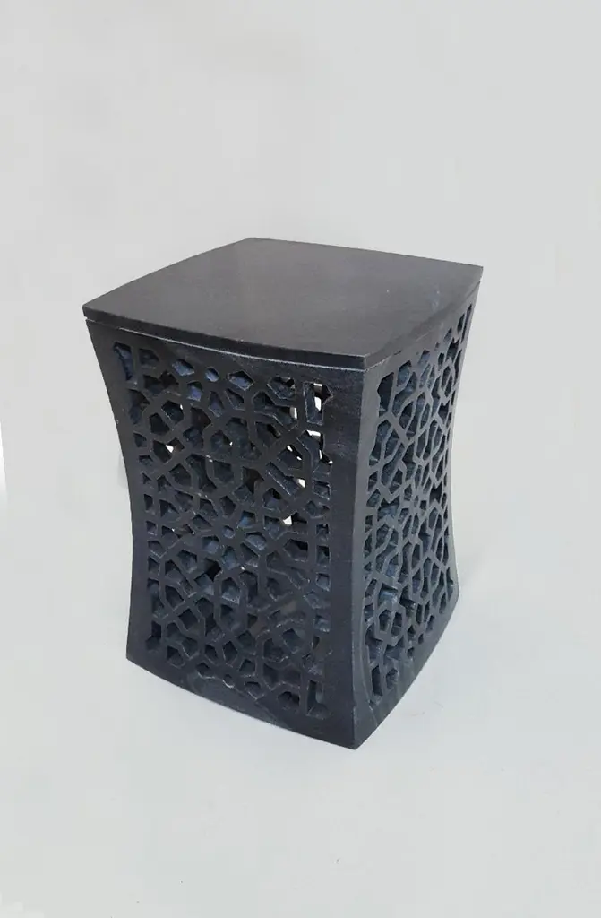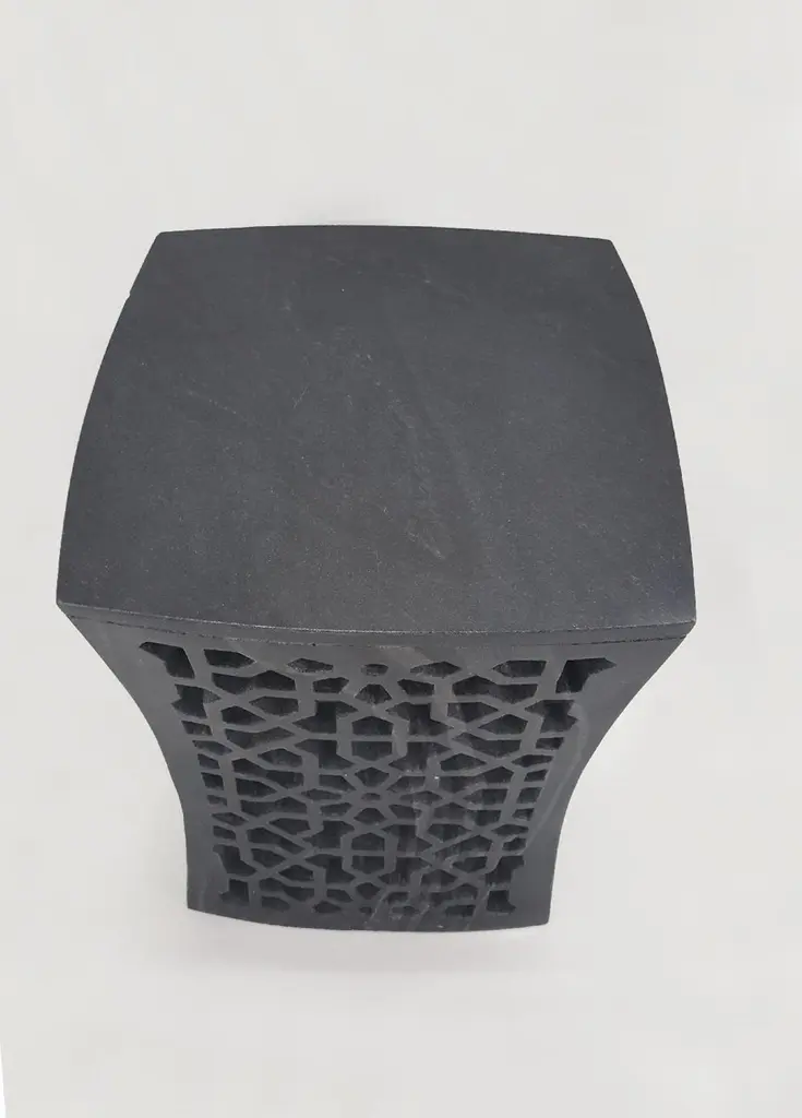 Inspired by the elegant pierced marble “Geometric jali” screens and windows he saw in the palaces of Mughal India, the renowned designer Paul Mathieu has created a unique collection of hand-carved side tables. Solid blocks of marble are hollowed out and hand-carved into low elegant tables through which light and air pass with ease. The intricate jali patterns are first traced onto the surface of the stone. Craftsmen then hand chisel and form hundreds of intricate, interlocking patterns in each piece before the tables are polished by hand. Jour Geometric Jali Side Table in Black Marble Size- 12"x12"x16"HMaterials - Black Marble, Hand-CarvedBuyer Cancellation-The cancellation charge is 25% which increases to 50% if the production is started.Prices do not include shipping from India (for custom orders) or our MN warehouse (items from stock). That will be additional.