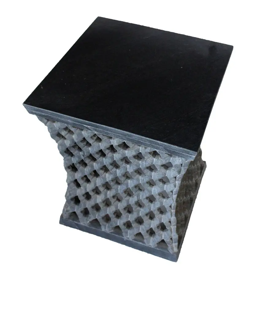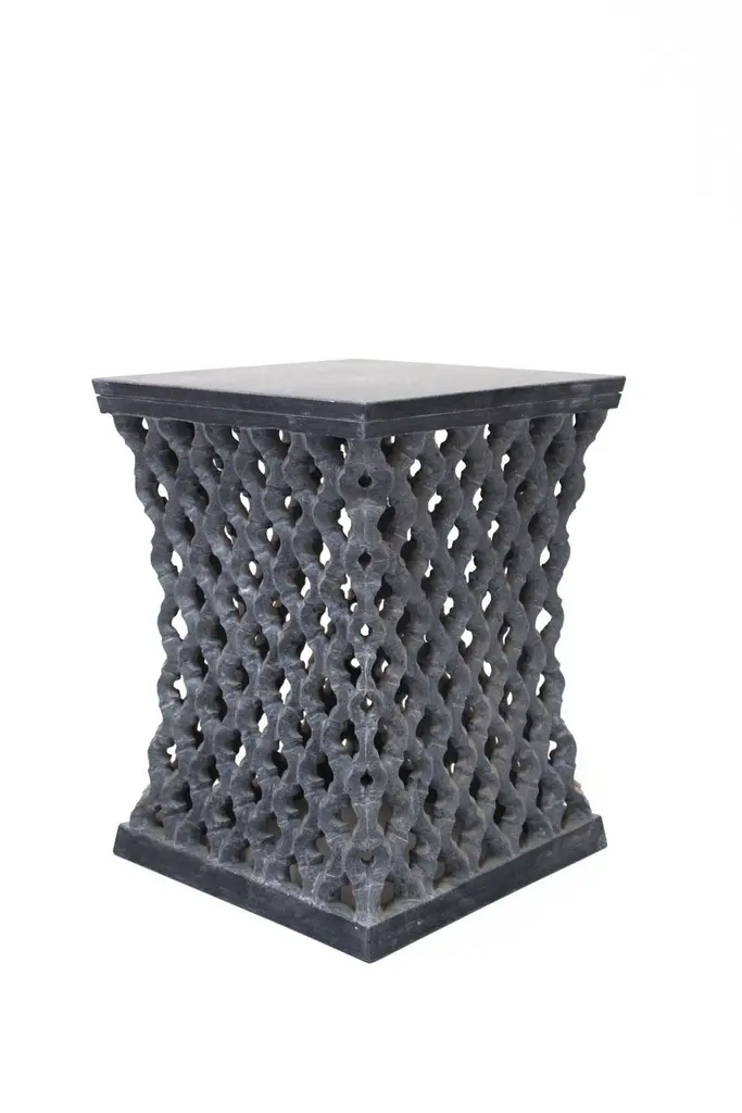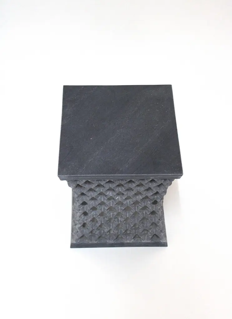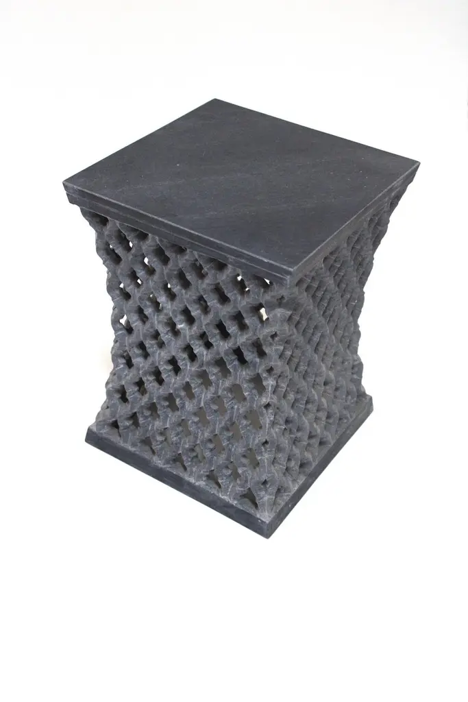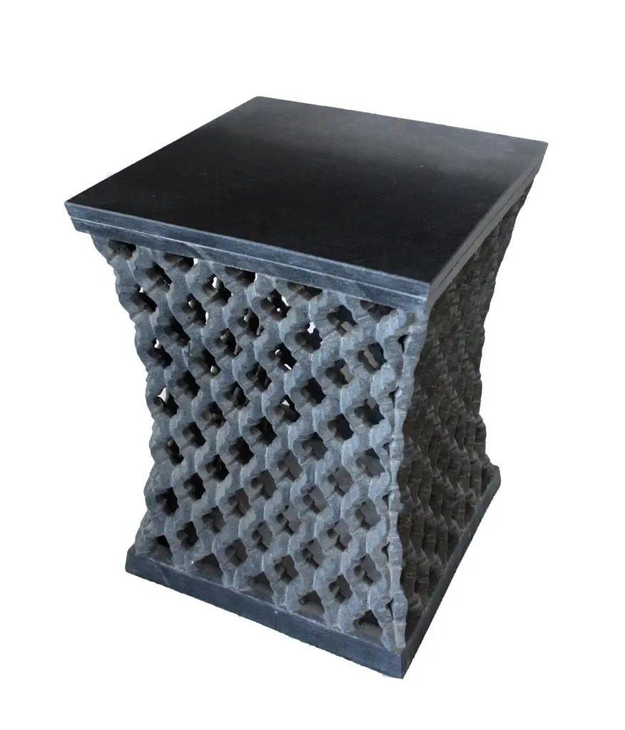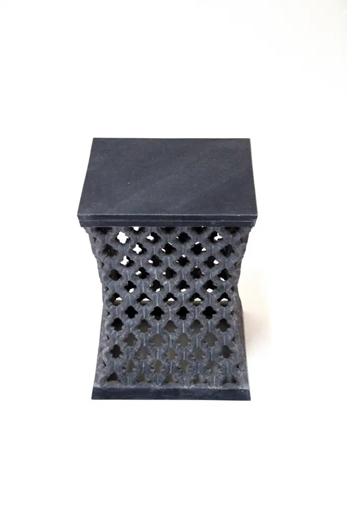 Inspired by the elegant pierced marble “jali” screens and windows he saw in the palaces of Mughal India, the renowned designer Paul Mathieu has created a unique collection of hand-carved side tables. Manufacture: Solid blocks of marble are hollowed out and hand-carved into low elegant tables through which light and air pass with ease. The intricate jali patterns are first traced onto the surface of the stone. Craftsmen then hand chisel and form hundreds of intricate, interlocking patterns in each piece before the tables are polished by hand.Jour Jali Square Table in Black MarbleSize- 12"x12"x16"HMaterials - Black Marble, Hand-Carved, Semi matt finishedBuyer Cancellation-The cancellation charge is 25% which increases to 50% if the production is started.Prices do not include shipping from India (for custom orders) or our MN warehouse (items from stock). That will be additional.