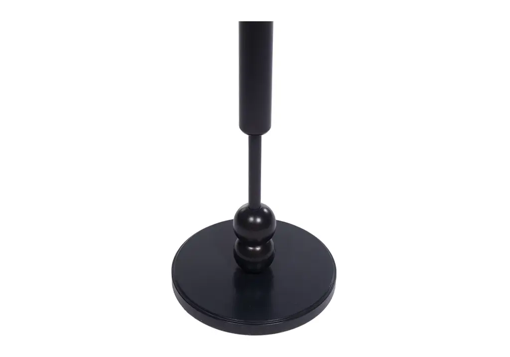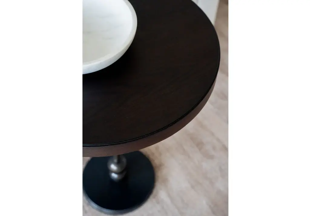 The Juno is a dimensional addition with its slim silhouette, accentuated by two rounded accents and an elongated cylinder set along the stem. Its smooth finish and rosewood top lends a handsome, refined look styling easily in living rooms with sofas and in between chairs.