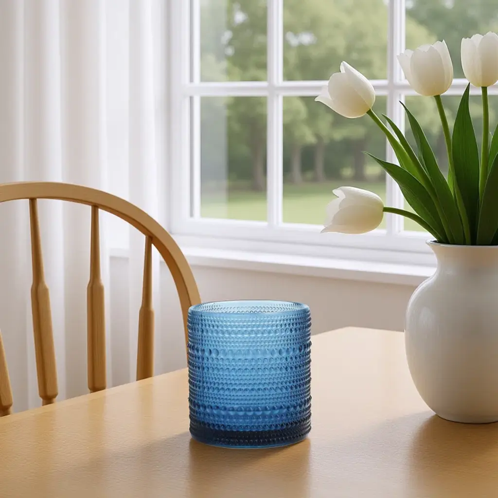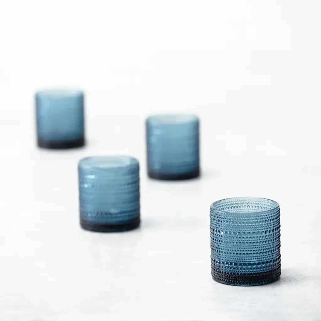 This set of six drink glasses brings a timeless elegance and array of subtle color to your table setting. Inspired by Parisian flea market finds, each is hand-made from glass and features unique bands of beaded detailing, adding texture and a captivating aesthetic. With a versatile 14 oz. capacity, they are perfect for water or mixed drinks. Plus, this set is dishwasher safe, ensuring a quick cleanup after every use.