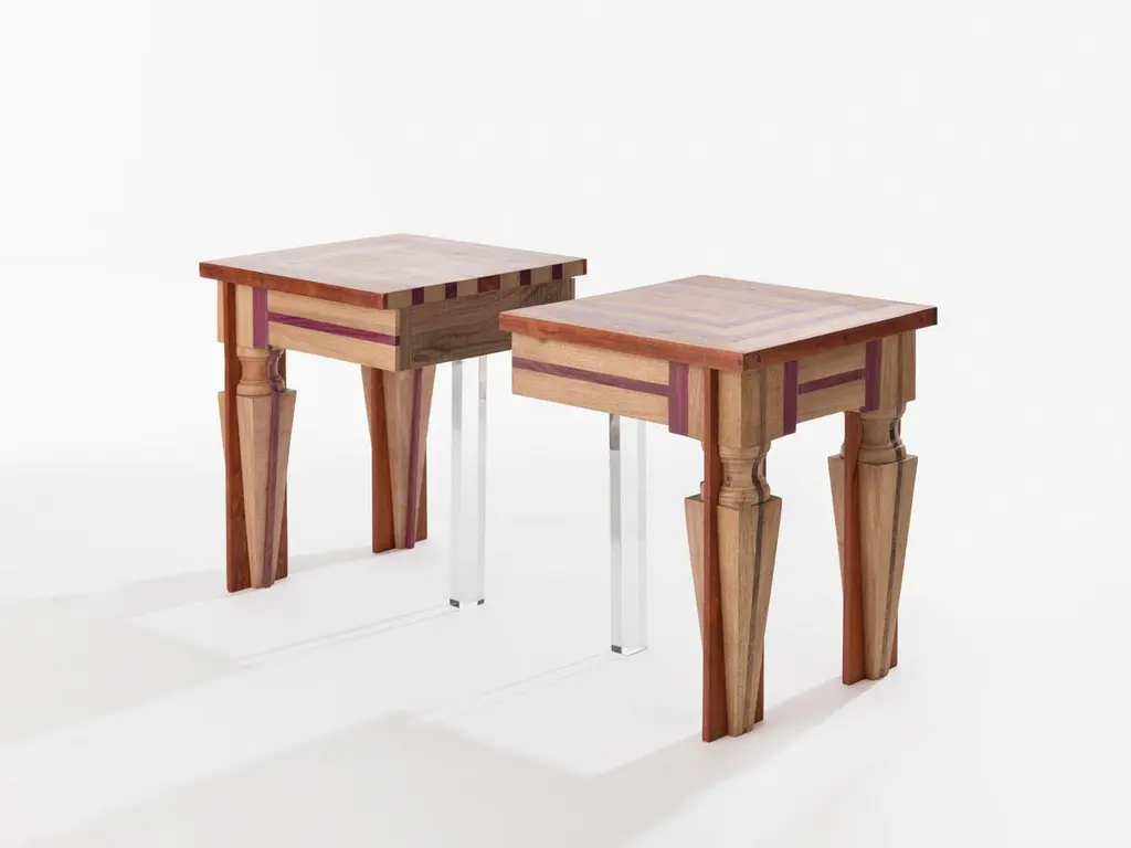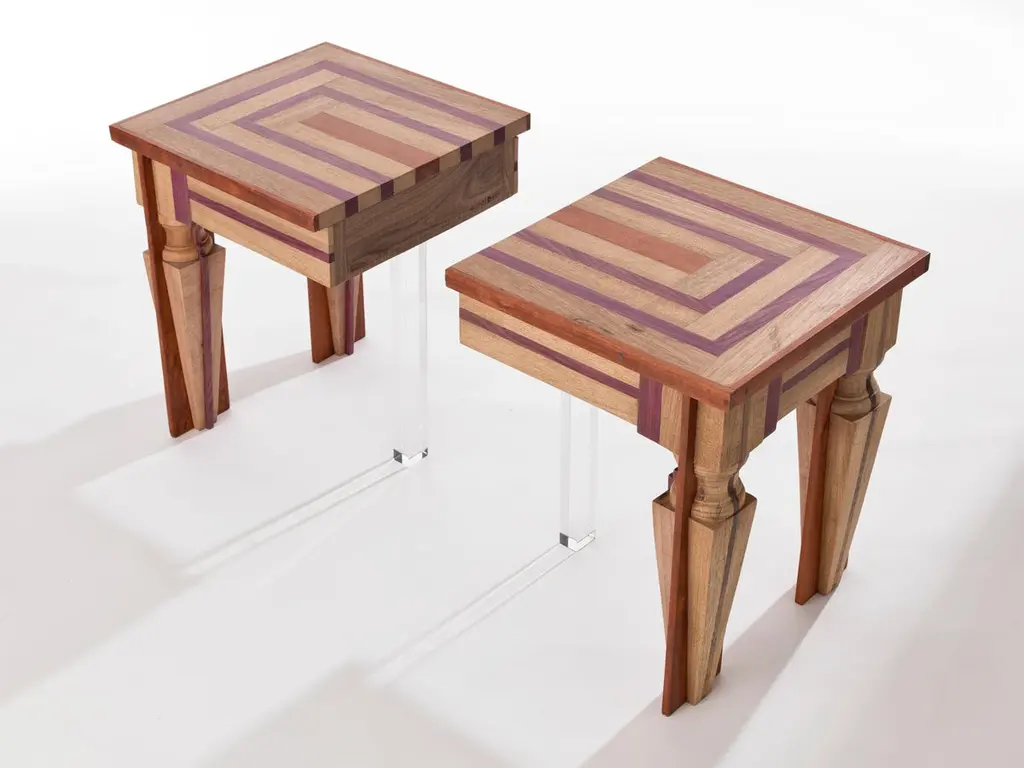 Just Contrast Side Table by HillsideoutDimensions: W 40 x D 40 x H 48 cm.Materials: Amazonian Woods (Walnut, Muirapiranga), Handcrafted Italian nut Wood, Acrylic.Hillsideout is an Italian-German collaboration which combines antique restoration techniques with contemporary mediums. Founded in 2009 by Andrea Zambelli and Nat Wilms, the brand name is a linguistic game related to their vision of furnishings that finds inspiration in an external element from the land by bringing it "out" into interiors.Andrea Zambelli (b. 1978 in Italy) is a professional restorer of furniture with more than 15 years working experience in Bologna dealing with wealthy family heritages dating from the early 17th to the mid 20th centuries. As a designer he believes in a possible re-interpretation of his former profession believing that ancient skills of application, which are slowly disappearing, should be preserved. The insertion of innovative materials using antique manufacturing skills is based on the historical furniture tradition but also renews it at the same time.Nat Wilms (b. 1976 in Germany) is a freelance artist with a degree in Sculpture at the Academy of Fine Arts in Bologna/Italy. She graduated with her thesis about Circular and Linear Time in cultural-visual Anthropology with the art critician Roberto Daolio in 2006. Both during and after her academic formation she took part in multimedia classes at the University of Art in Berlin and has participated in numerous workshops. She is a teacher of multimedia classes and as a conceptualist she developped the brand strategy.Post-Hillsideout: The project Hillsideout contains the production of unique editions made between 2009 and 2022. The creative collaboration ends after more than 12 successful years and the two founders divide for going on with their own projects. The left editions or designs which came out during that period are still for sale though and in production on request, brandmarked and with the usual certificate of authenticity signed by the designers.