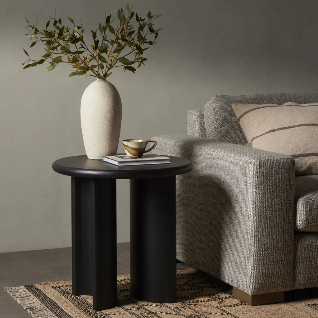 The Justice End Table is a captivating piece that effortlessly combines form and function. Its unique design features crescent-shaped legs that support a round tabletop, creating an organic presence that enhances any living room. This end table is a study in shape, offering a harmonious blend of style and practicality that complements a variety of interiors.