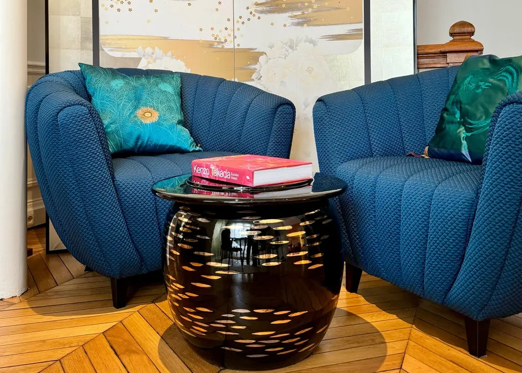 Explore the enigmatic elegance of the TsuKuyomi ceramic collection, designed by K-3 and exquisitely handcrafted by Rometti. This unique line captures the allure of the unknown, transforming it into captivating vases that play with the interplay of shadow and light reminiscent of the night. Among the standout pieces is the TSU/F1, a stunning side table sculpted by hand from clay. It features a sleek, glossy black enamel finish, adorned with hand-painted gold and platinum details that add a touch of opulence to its minimalist design.Dimensions:•Height: 40.5 cm•Diameter: 61 cmThe TsuKuyomi collection, where design meets craftsmanship in the celebration of modern aesthetics and timeless Italian artisanal traditions.