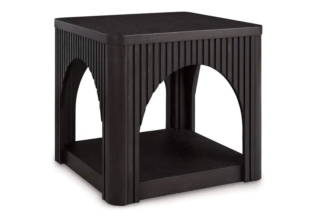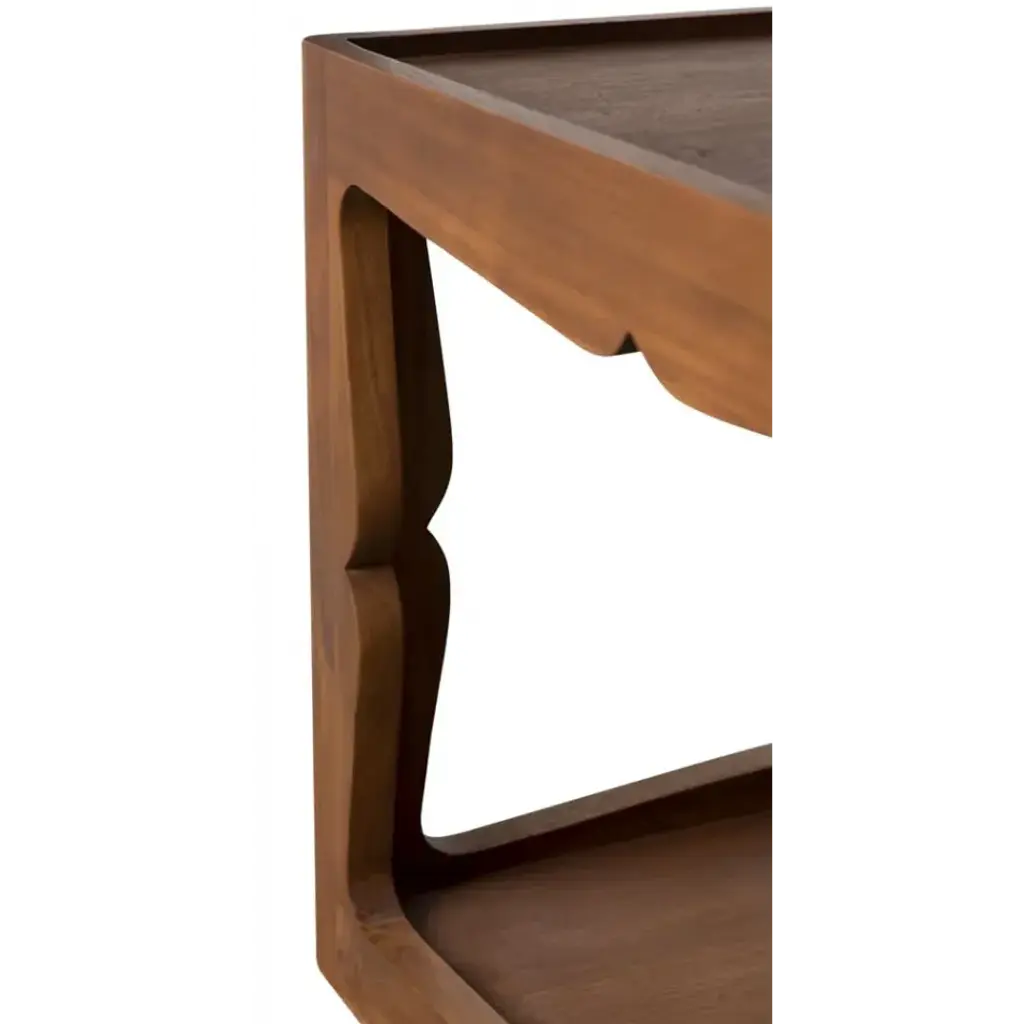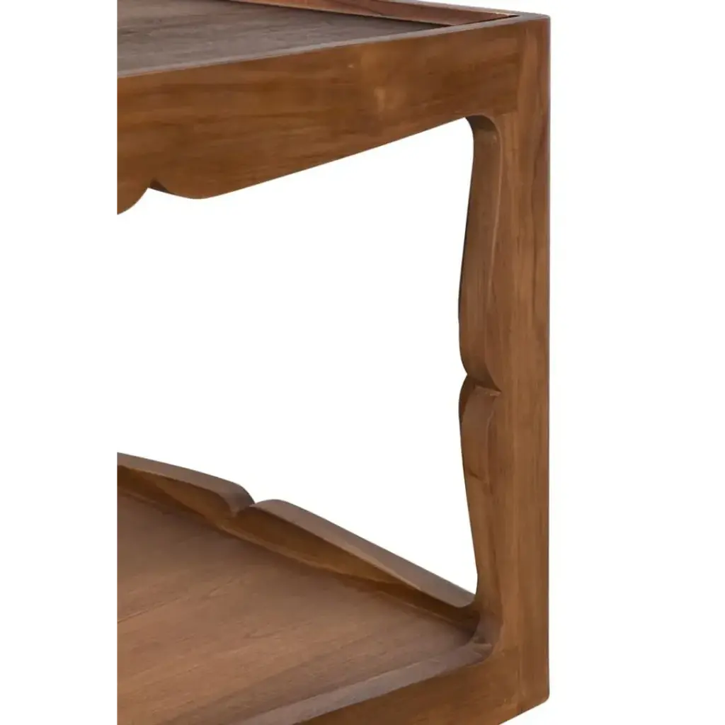 Elevate your space with the Kabbal Side Table, a masterpiece of modern design and crafted from solid teak with a clear coat flat finish.