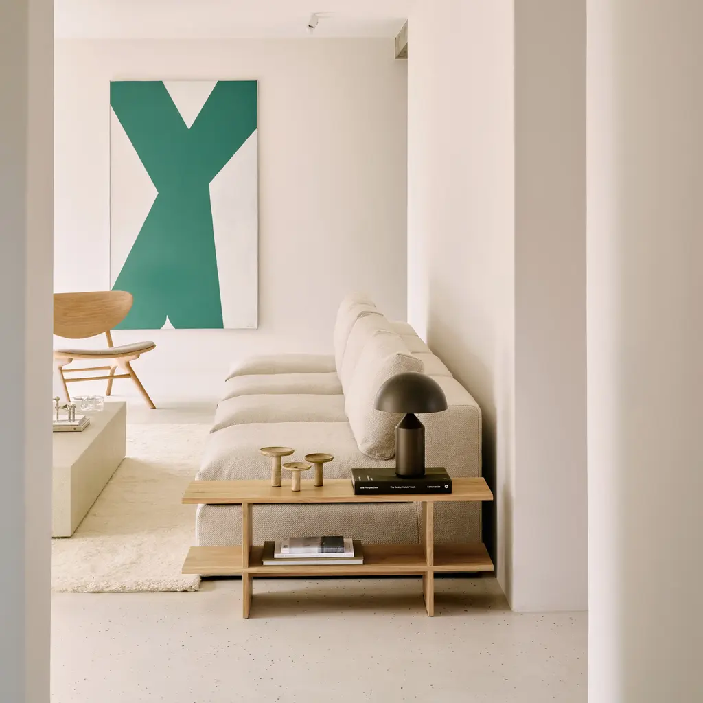 Introduce balance and harmony into your home with the Kabuki Side Table from Ethnicraft. Crafted from durable, varnished teak and designed by renowned artist Reynaldo Zapp, this piece exudes a sense of tranquility and organization. Versatile and understated, it pairs perfectly with the Mellow modular sofa or stands alone as a functional statement. Highlights