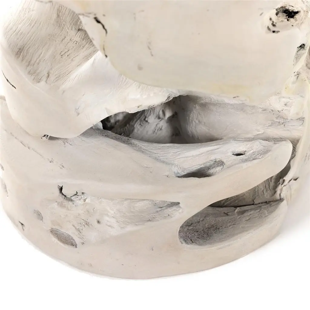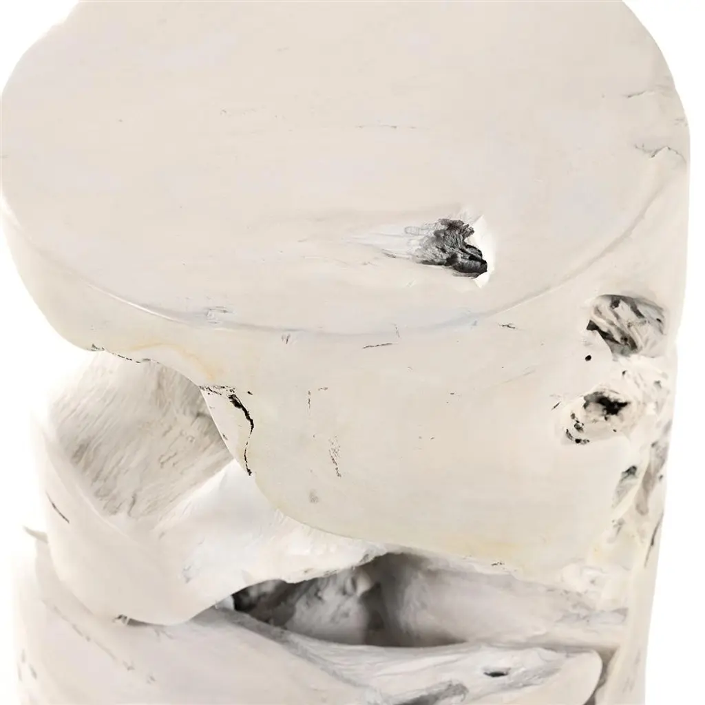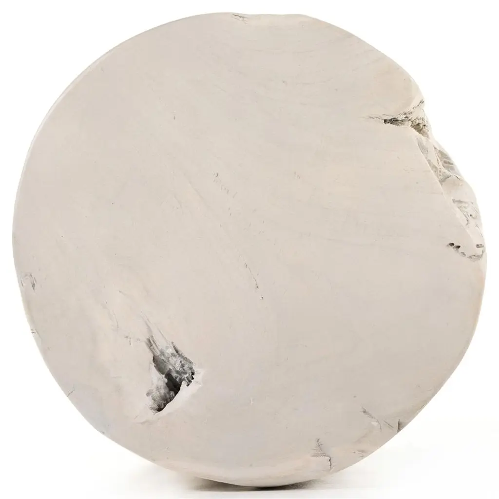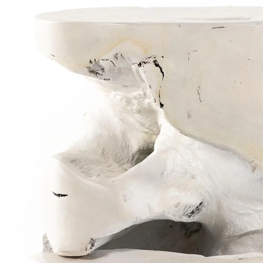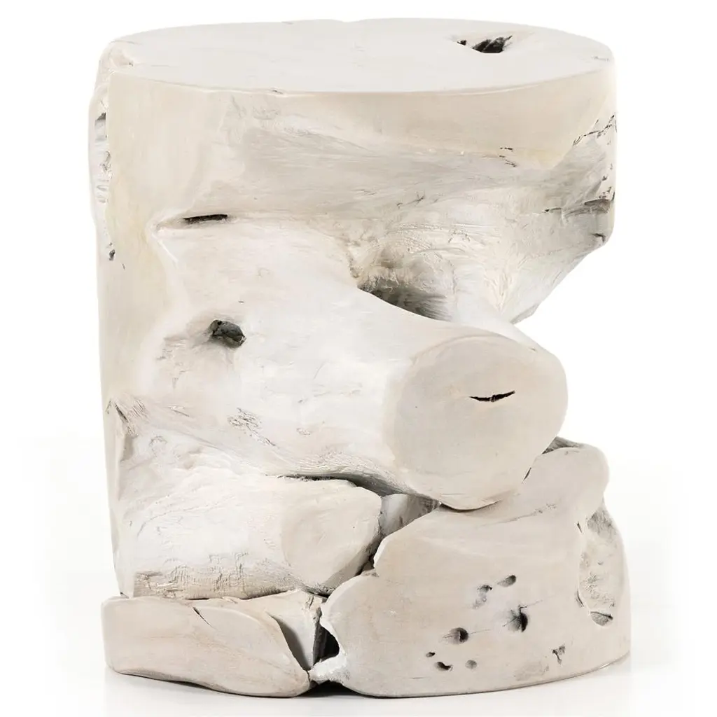 Crafted from teak with an ivory finish, the Kaili end table elevates any living space with the richness of organic materials. The smooth top contrasts with the dynamic, textured surfaces below it. This outdoor end table will continue to develop character as the teak weathers naturally over time.