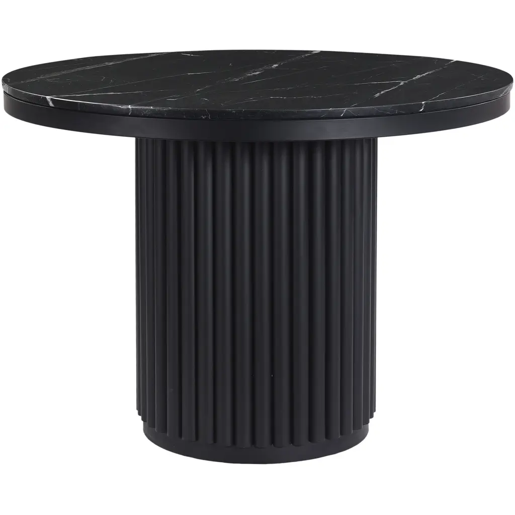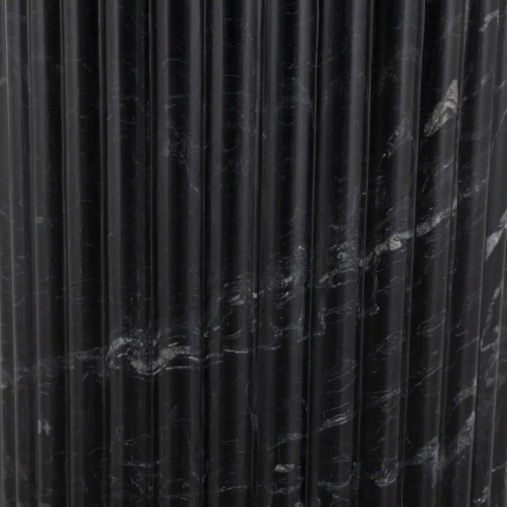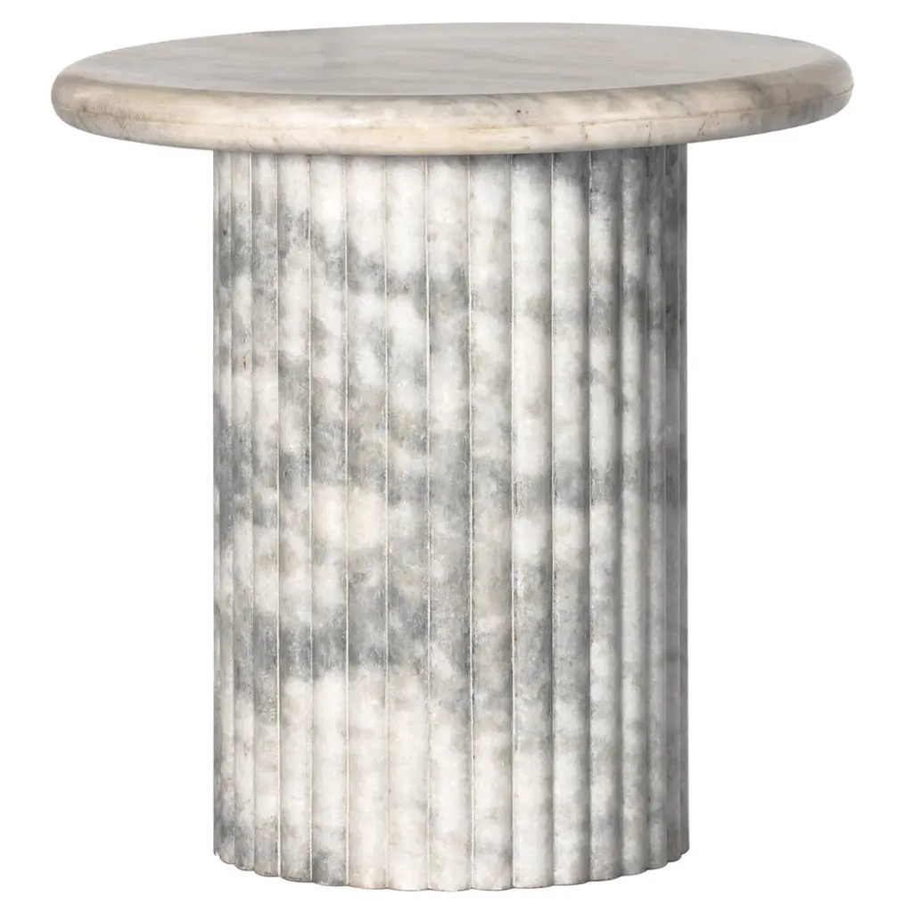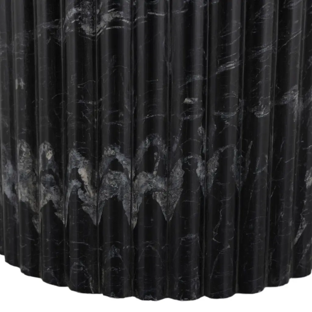 Inspired by Italian design, the Kamden End Table features a swirling marble base that is scalloped for a linear look with heavy texture. This exquisite piece is topped with polished marble, creating a sophisticated and elegant addition to any space.