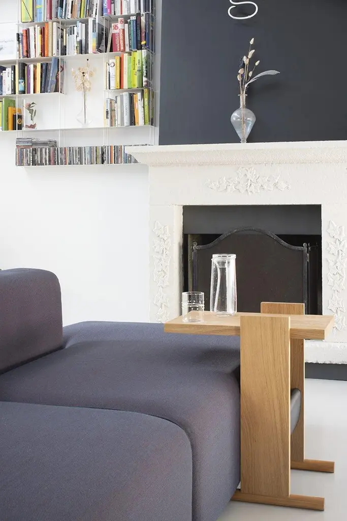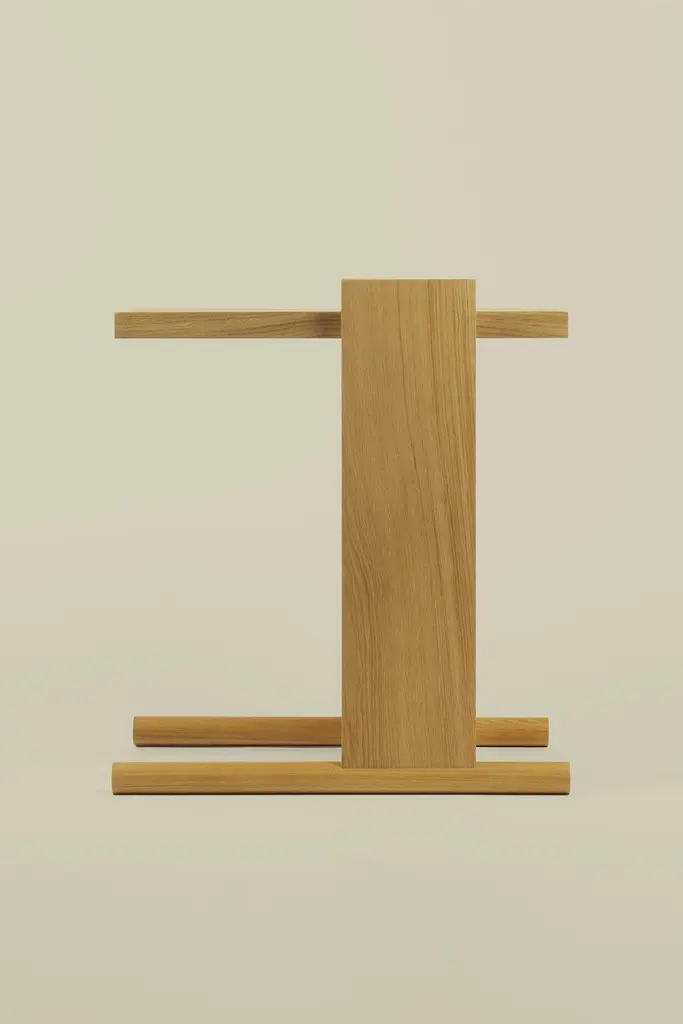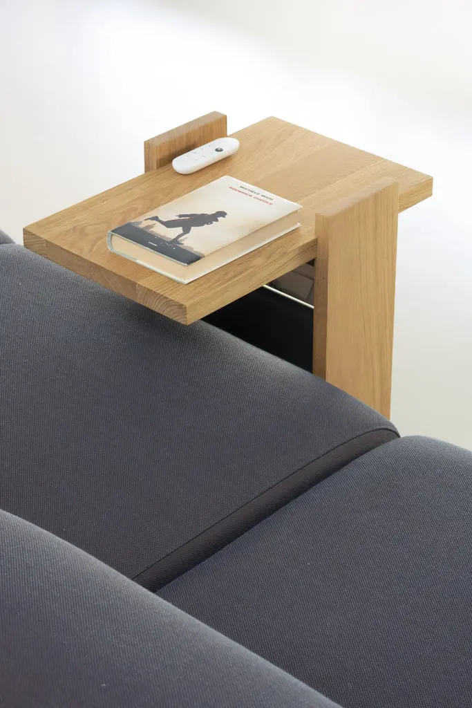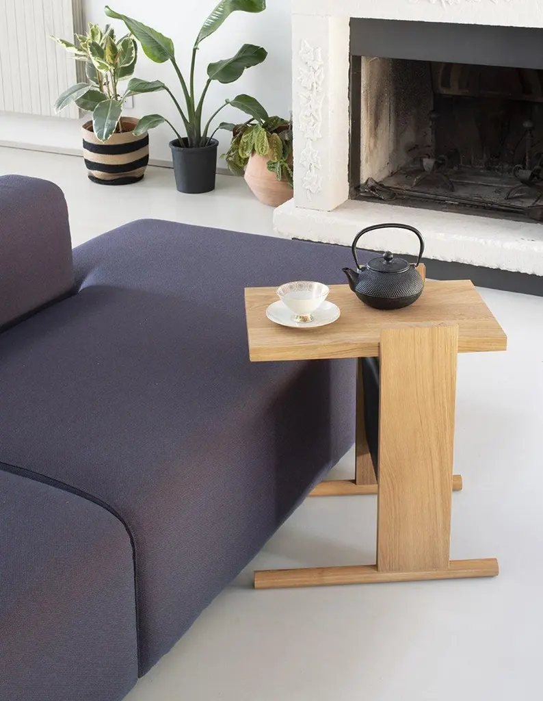 Kangaroo Side Table With Natural Ash Wood & Black Leather By Antonio De Marco