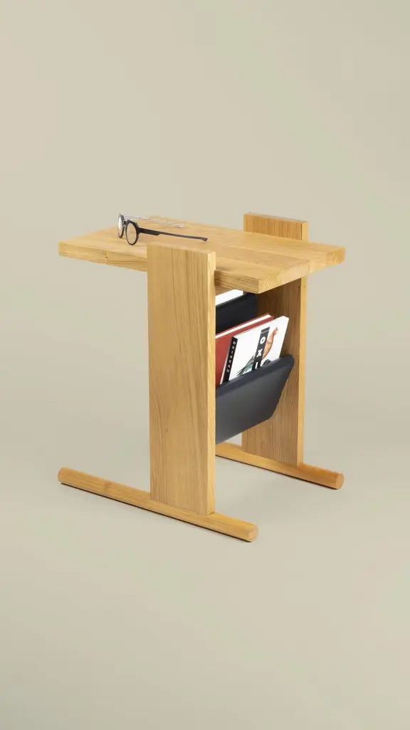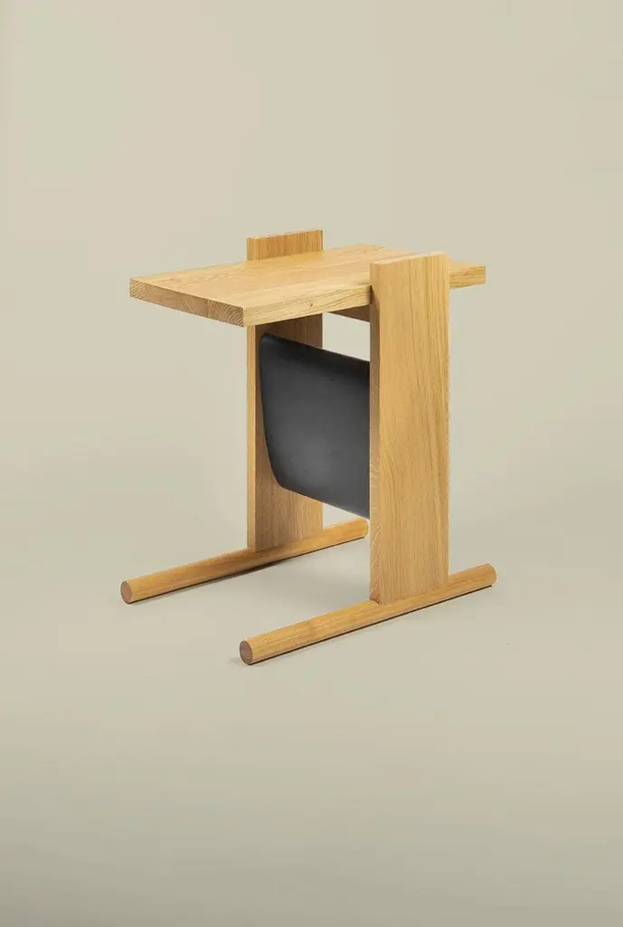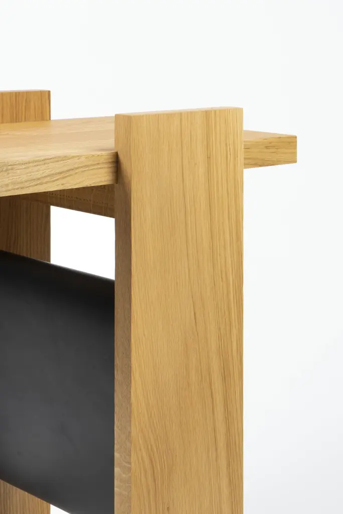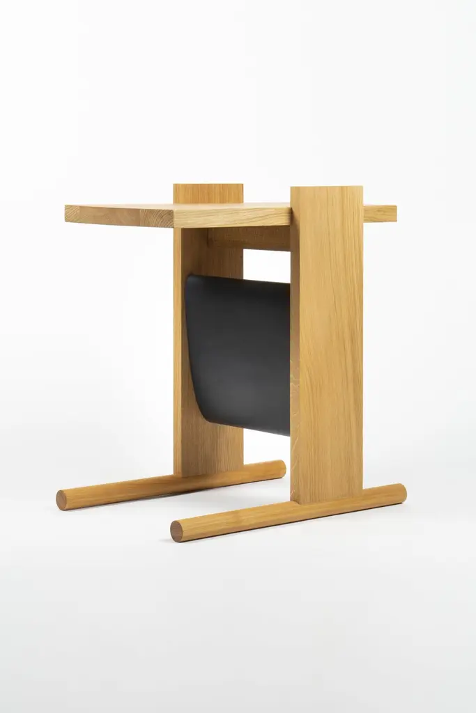 Kangaroo Side Table with Natural Ash Wood & Black Leather by Antonio De MarcoDimensions: D 68 x W 68 x H 38 cm. Materials: Wood and leather.Available in different material options. Prices may vary. Please contact us.KANGAROO is simple, useful, essential in its shape and function; a few elements nestled together that accommodate a soft leather container bag.Antonio de Marco (1983) has been involved in mechanics and carpentry since he was very young; are areas that represent for him a constant stimulus to seek, create and experience new ways of transforming matter.Passionate about how things are done, the elements they make up, to what and to whom they serve; the objects he designs have the ambition not to fade over time, but to sediment in the memory of the one who uses them.He studied at the Politecnico di Milano at the Royal Danish Academy in Copenhagen and holds a master at the Marangoni Institute in Milan. Than works in barcelona for Santa&Cole and in Milan for Isao Hosoe and than Matteo Ragni Studio. In addition to his design activity, he teaches in the Design Methodology master’s program at NABA in Milan and the Scuola Politecnica del Design, as well as in the three-year program at Istituto Marangoni.In his studio he cont inued the research and experimentation within design; a place where to think through his hands.