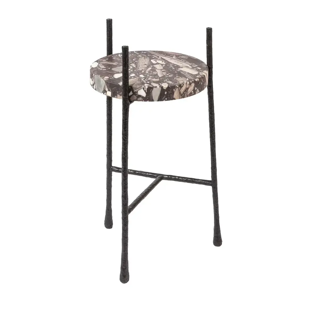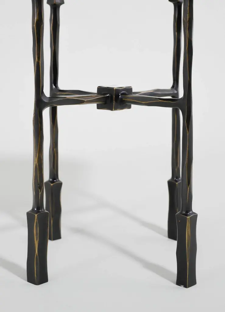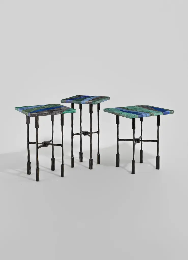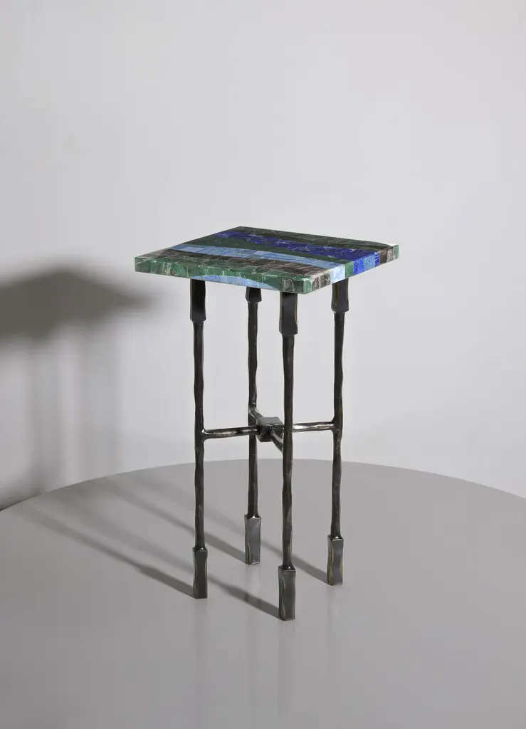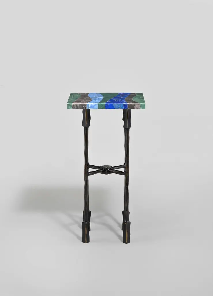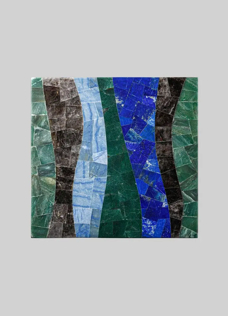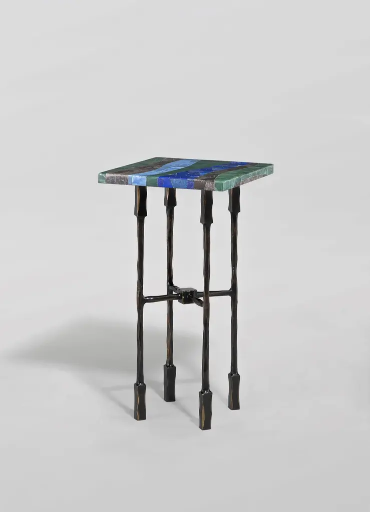 Kannur Side Table Large, Viya by Vikram GoyalCrafted from cast brass and adorned with semi-precious stones, this collection pays homage to the diverse hues of Indian landscapes. From the azure blues of oceans and lakes to the lush greens of the forests, it draws inspiration from the pristine snow valleys of the North and the rugged terrains of Ladakh. Each piece captures the vivid palette of nature, echoing the vibrant tones of India's varied topography and embodying the spirit of the land.Side Table in brass with semi precious overlay top. Handmade in India.Product DetailsMaterial: BrassOverlay Top: Yellow Aventurine, Jasper Desert Gold, Dark Green Aventurine, Blue Quartz, Dark Smokey Quartz, Forest JasperSize: 16"L x 16"W x 19"H 40.6 L x 40.6 W x 48.3 H cmWeight: 8.3 kg 18.26 lbsNumber of Pieces: 1 Side TableSKU: VST503This product has been handcrafted by local artisans. As such, slight variations are a testament to the unique character of a piece made by hand.