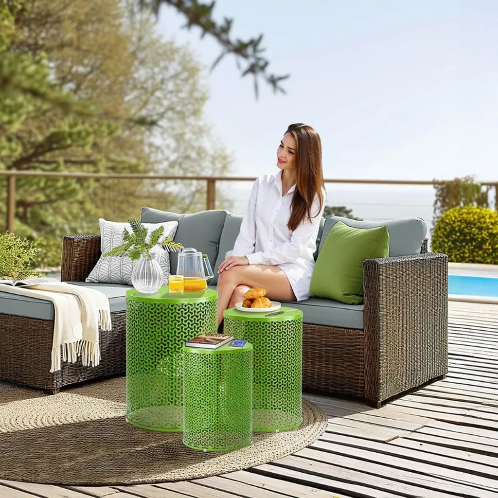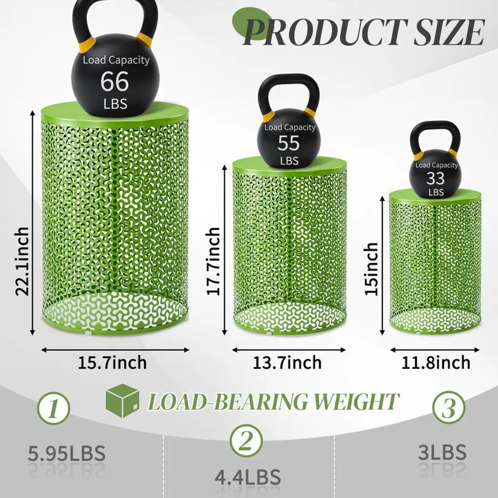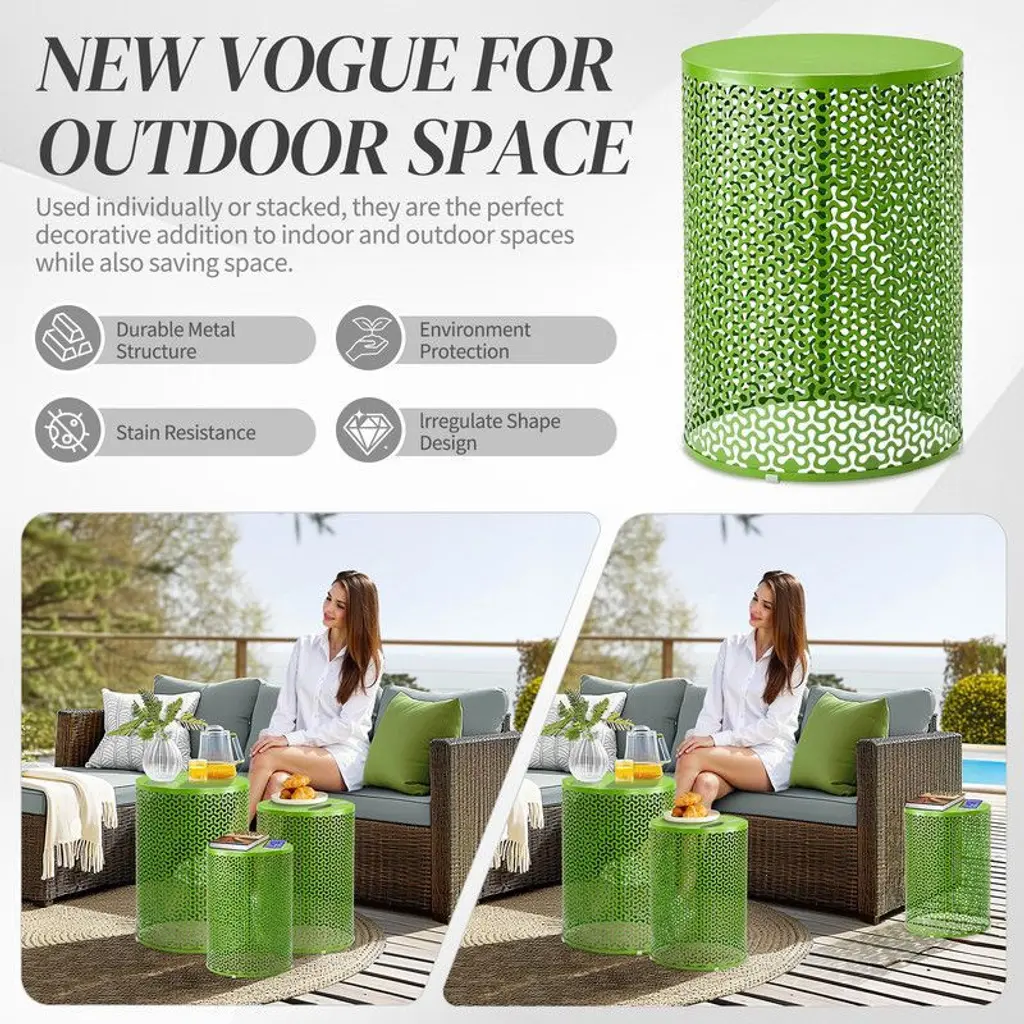 Karl Home| Outdoor Green Round Metal Stackable Side Table(set Of 3)