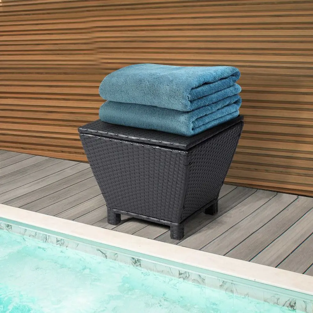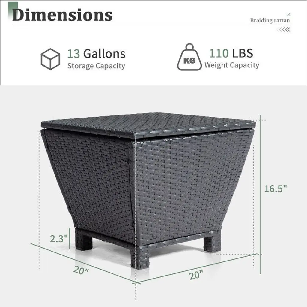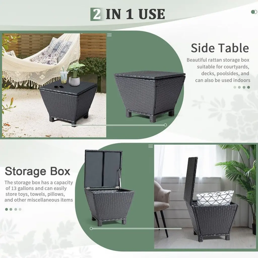 Upgrade your outdoor space with our Outdoor PE Wicker Side Table with Storage. This versatile piece combines the functionality of a side table with the convenience of a storage container, providing a practical solution for organizing your outdoor essentials. The elegant gradient rattan design adds a touch of sophistication to your patio or garden. With its all-weather handwoven PE rattan construction and sturdy steel frame, this side table ensures durability and long-lasting use. Maximize your outdoor storage options with this stylish and functional side table.