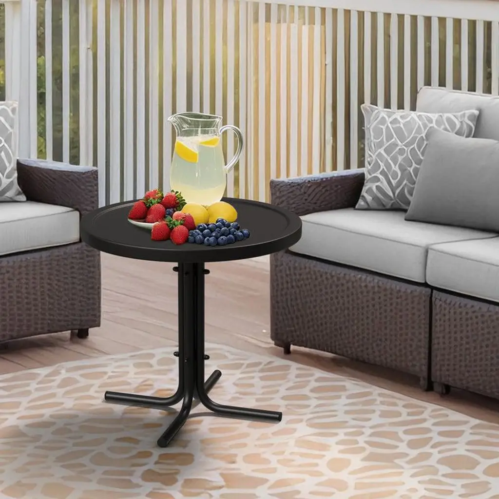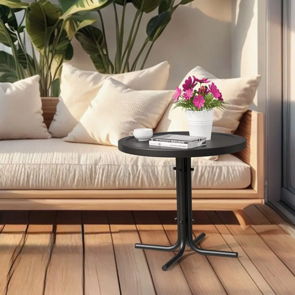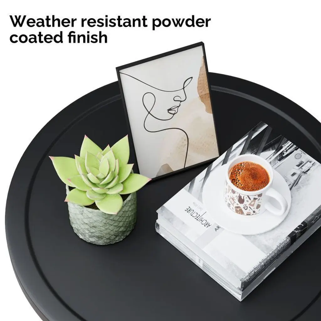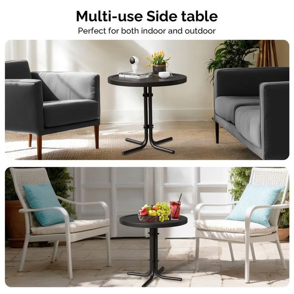 Add a vibrant touch to your outdoor space with the Round Side Table, a perfect blend of style and functionality. It is designed with a durable iron frame and a striking finish. This compact side table is ideal for patios, balconies, gardens, or poolside relaxation.