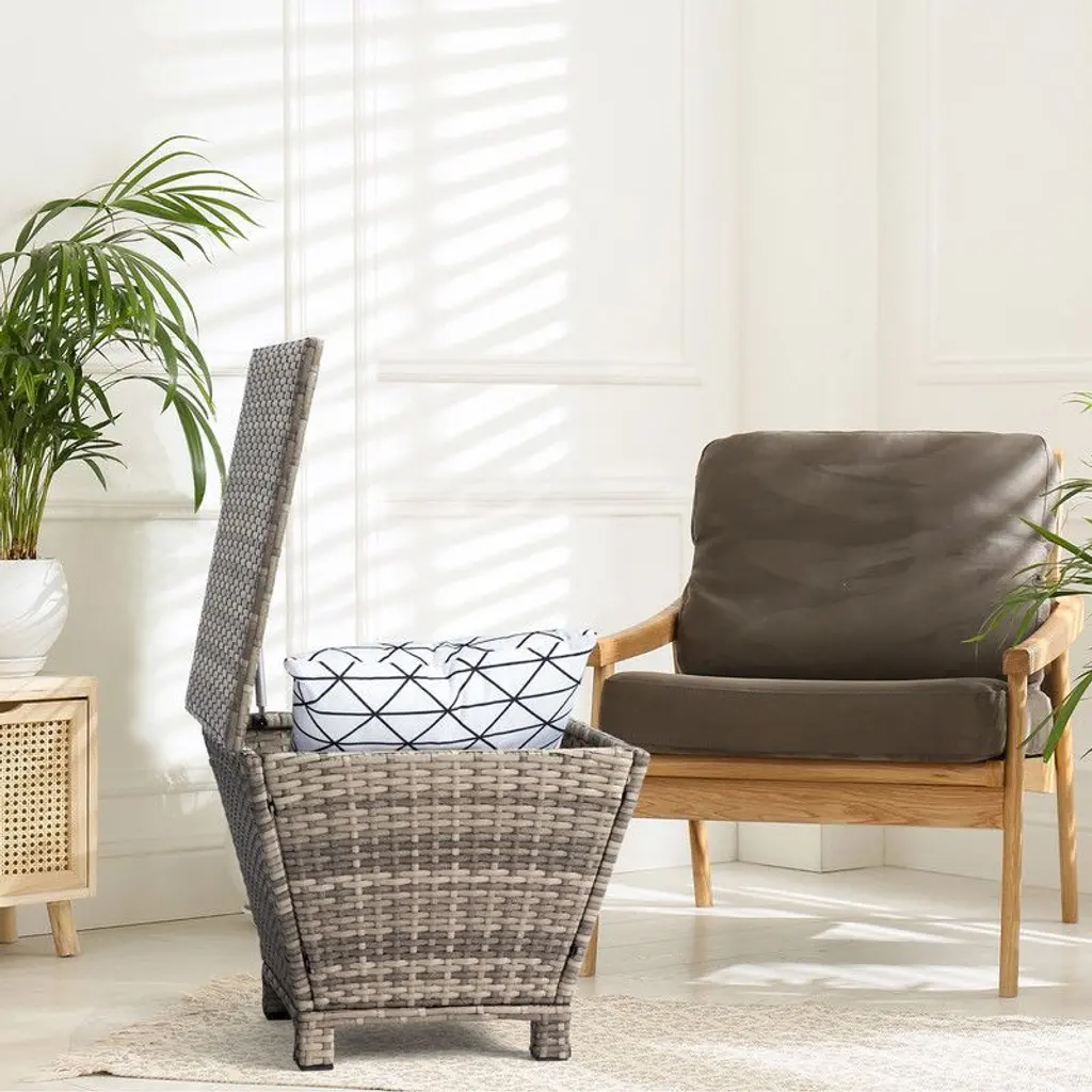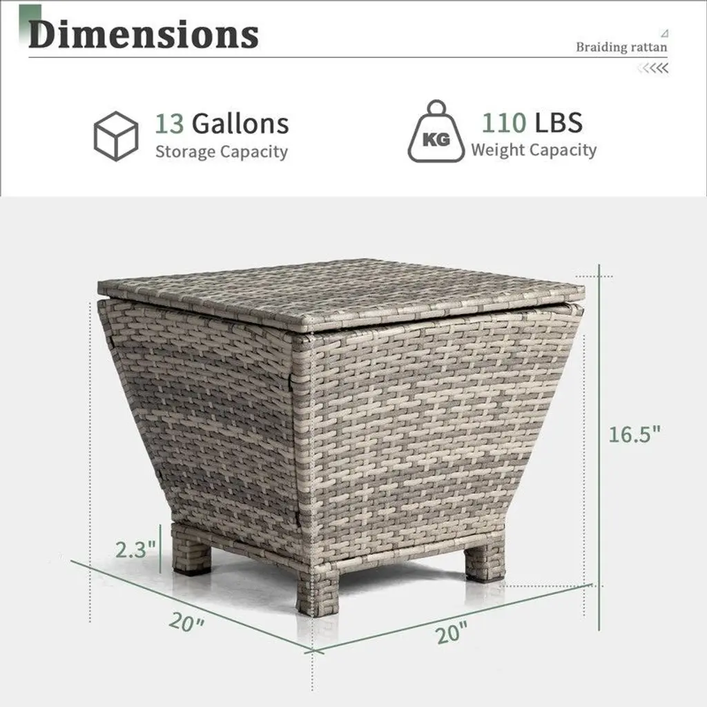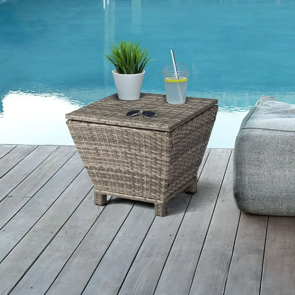 Upgrade your outdoor space with our Outdoor PE Wicker Side Table with Storage. This versatile piece combines the functionality of a side table with the convenience of a storage container, providing a practical solution for organizing your outdoor essentials. The elegant gradient rattan design adds a touch of sophistication to your patio or garden. With its all-weather handwoven PE rattan construction and sturdy steel frame, this side table ensures durability and long-lasting use. Maximize your outdoor storage options with this stylish and functional side table.
