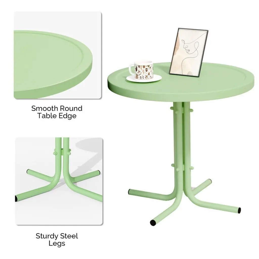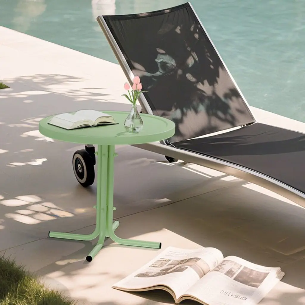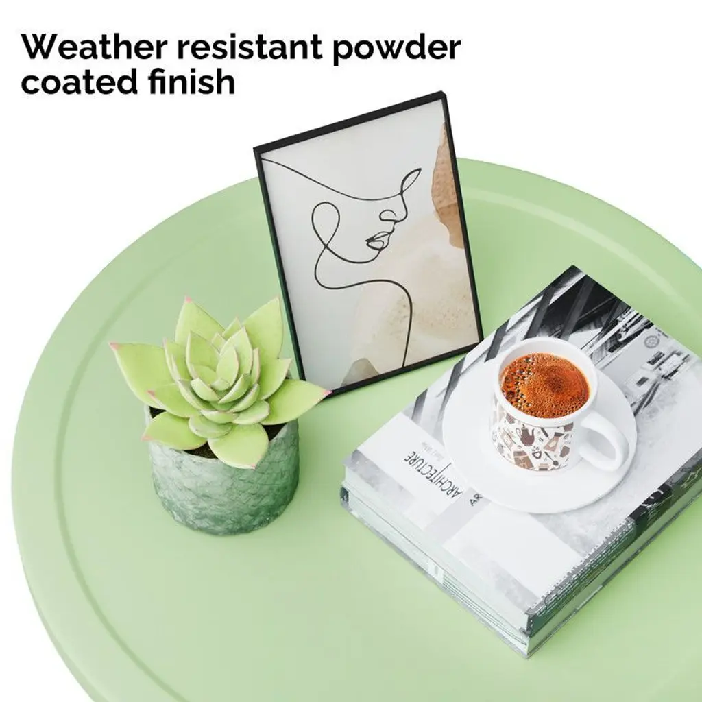 Add a vibrant touch to your outdoor space with the Round Side Table, a perfect blend of style and functionality. It is designed with a durable iron frame and a striking finish. This compact side table is ideal for patios, balconies, gardens, or poolside relaxation.
