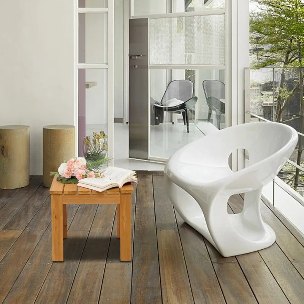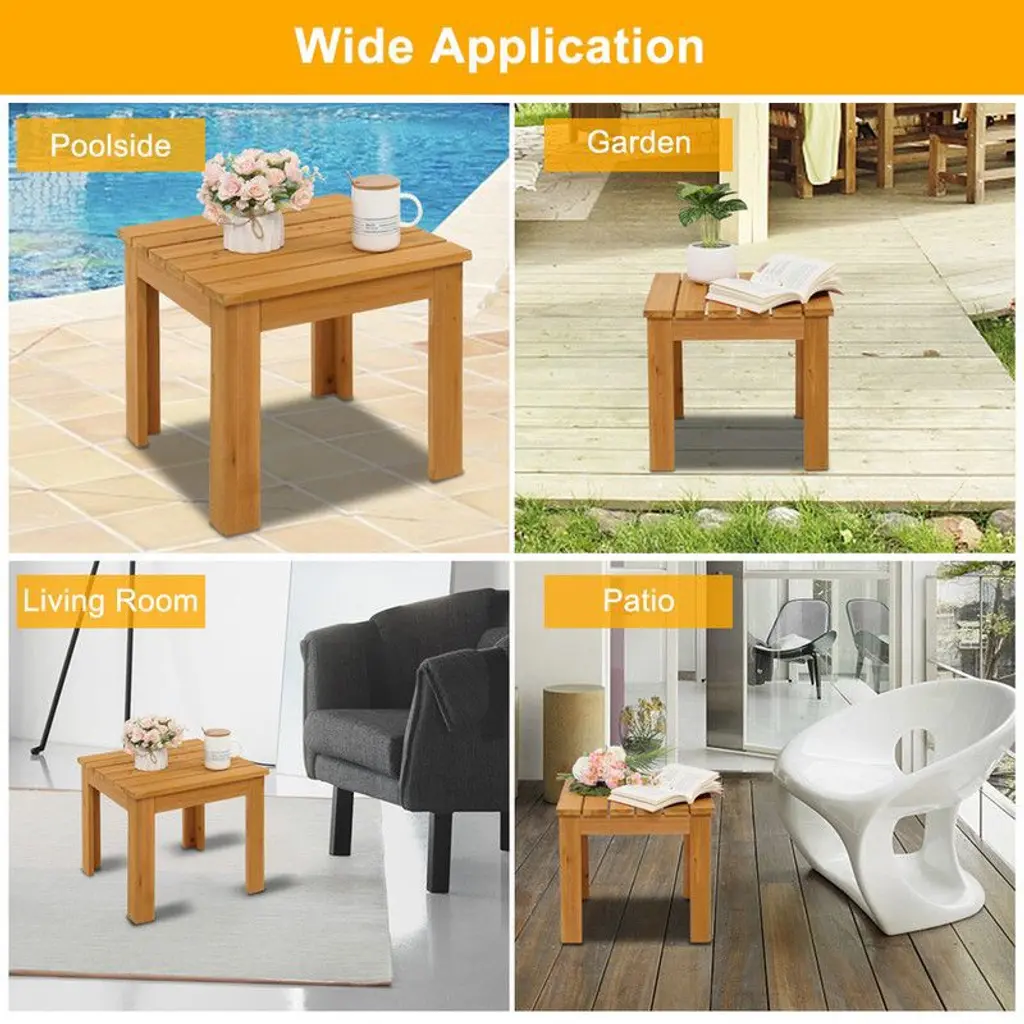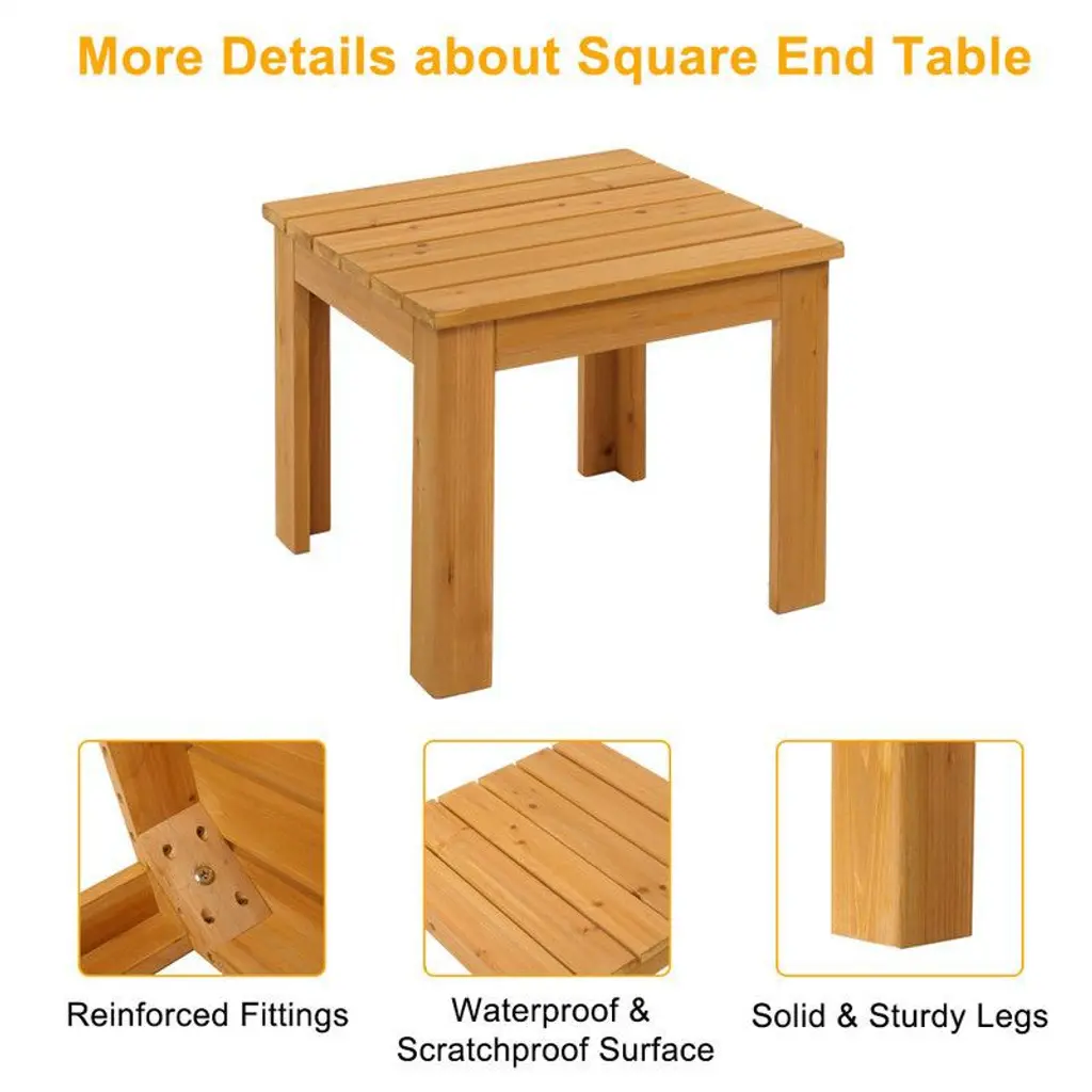 The Wooden Square Side End Table is made for the outdoors. Its natural color easily blends in with any environment, making it a perfect finishing touch to your outdoor space. The table features a slatted top that allows rain to run through when left outside during rainy days. Constructed of high quality fir wood with varnish on the surface, it is waterproof, weather resistant and scratch resistant. And it is easy to clean just with a damp cloth. It is also a wonderful choice to be placed beside your sofa or bed.