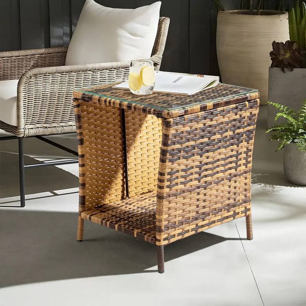Looking for a fashionable side table for daily use? Here I'd like to recommend this Glass Surface Brown Gradient Iron Frame Rattan Side Table to you. It is made of high quality material, durable and non-toxic for you daily use. This table with simple design and classical color can be compatible with different room styles. you can place it in your bedroom, living room, guest room, office, bathroom or any other places you want. It is delicate design with beautiful appearance, and gives color to your life. Actually, it is a good decoration to embellish your home. What are you still hesitating about? Order now!