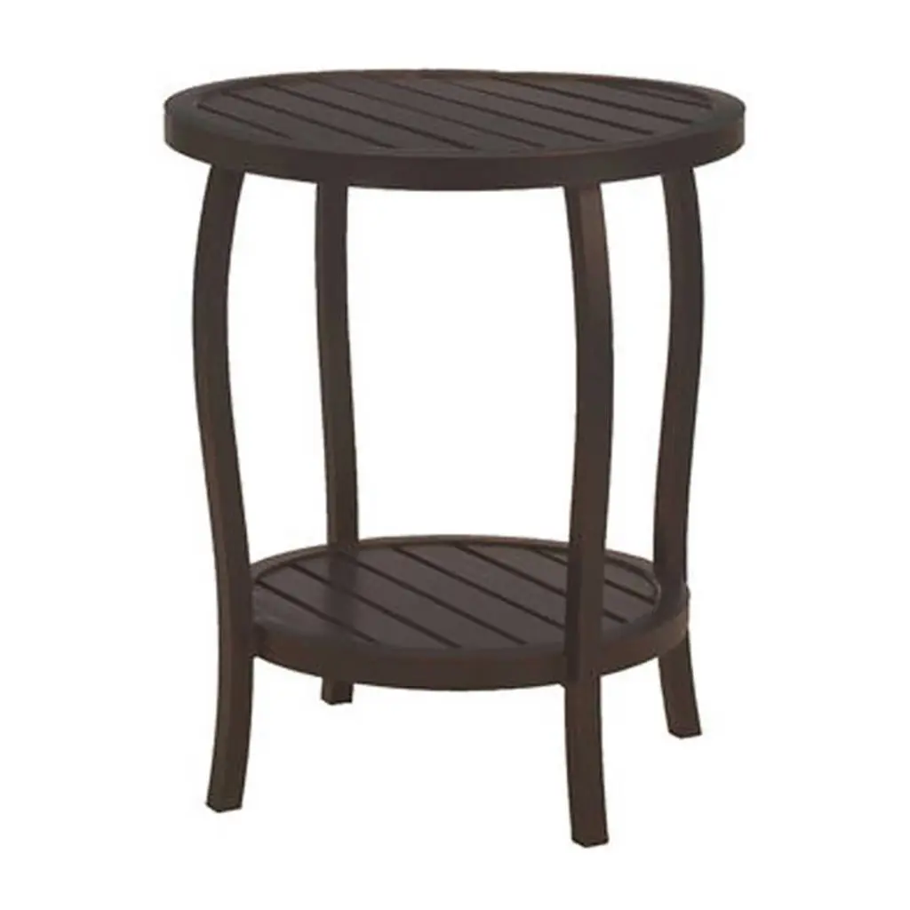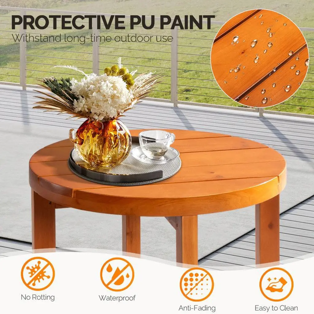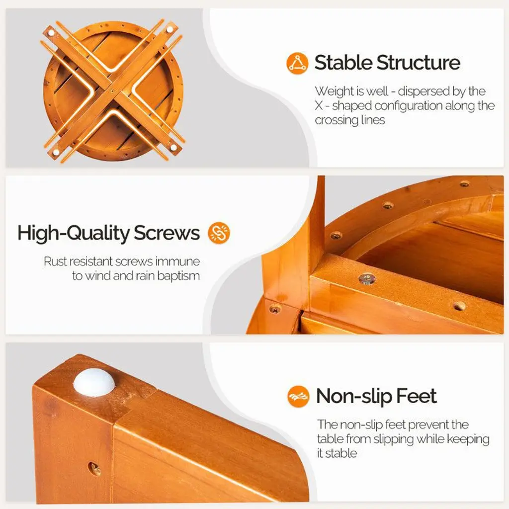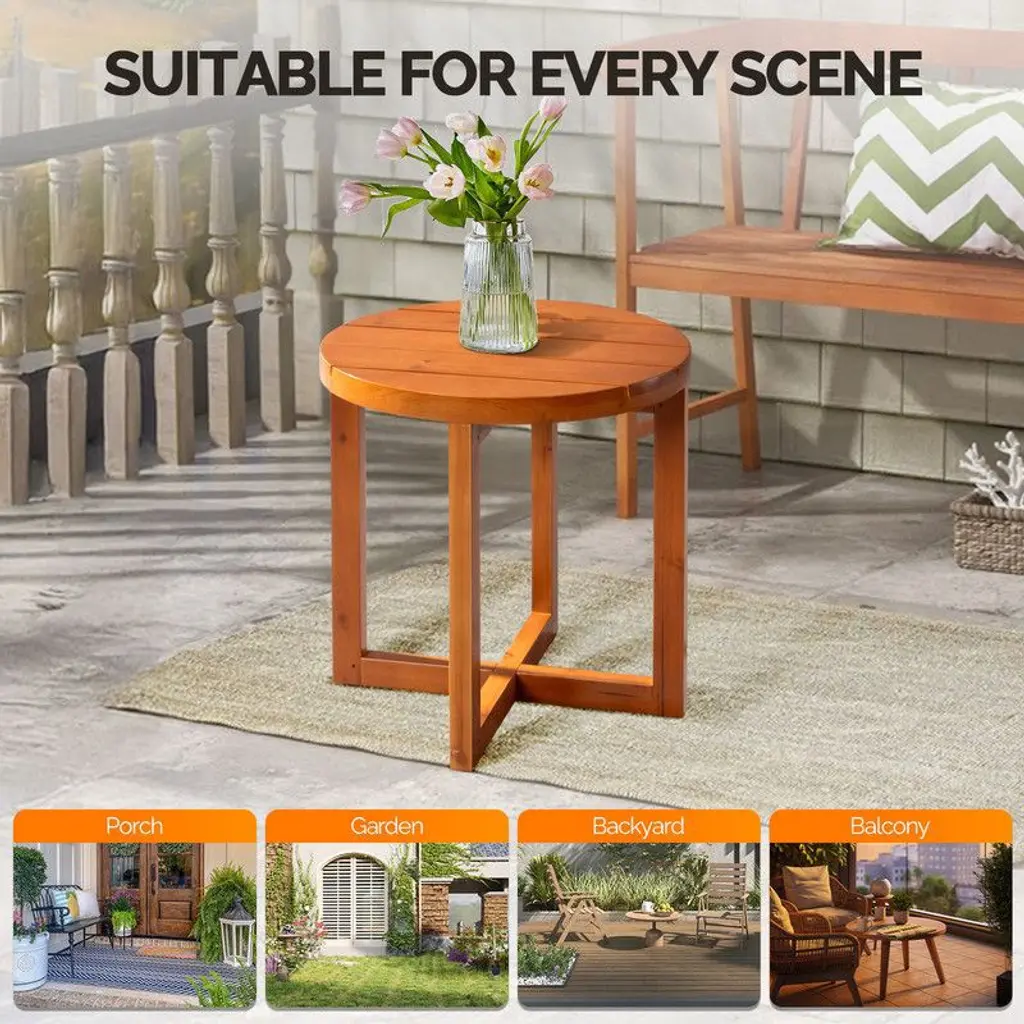 Add timeless charm and practical function to your outdoor or indoor living space with this 18-inch wood side table. Crafted from durable fir wood in a rich teak finish, it features a slatted tabletop and cross-leg base for enhanced style and stability. Lightweight yet sturdy, this compact table is perfect for holding drinks, snacks, books, or décor. Its weather-resistant design makes it ideal for patios, balconies, poolside areas, or cozy corners indoors.