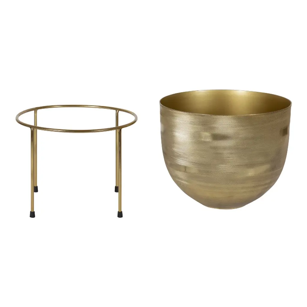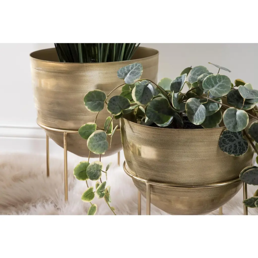 Kate And Laurel Navara Round Metal Freestanding Planter, 2 Piece, Gold